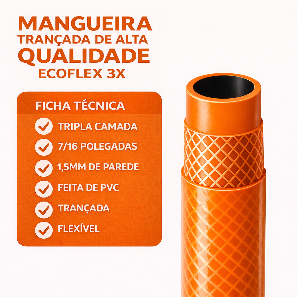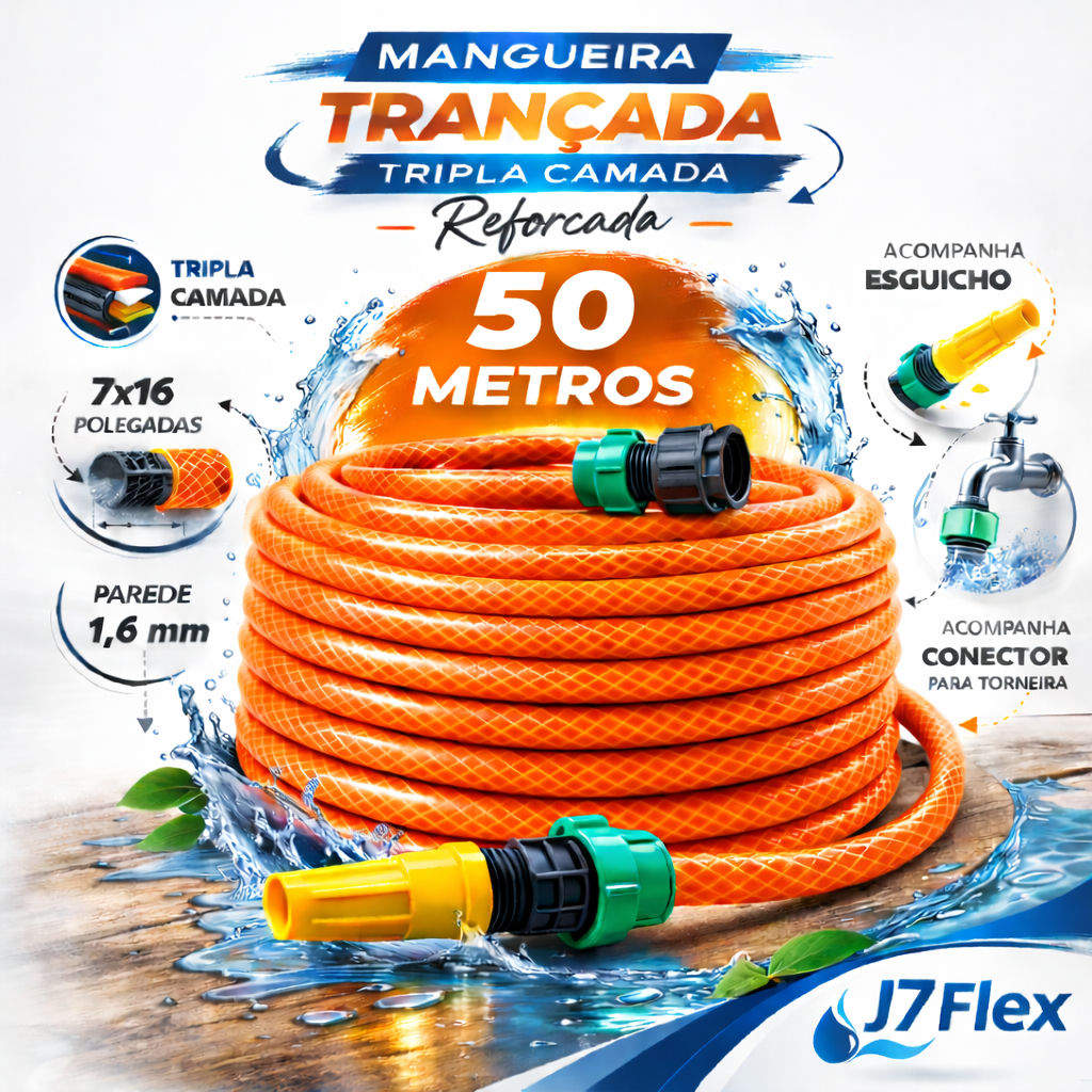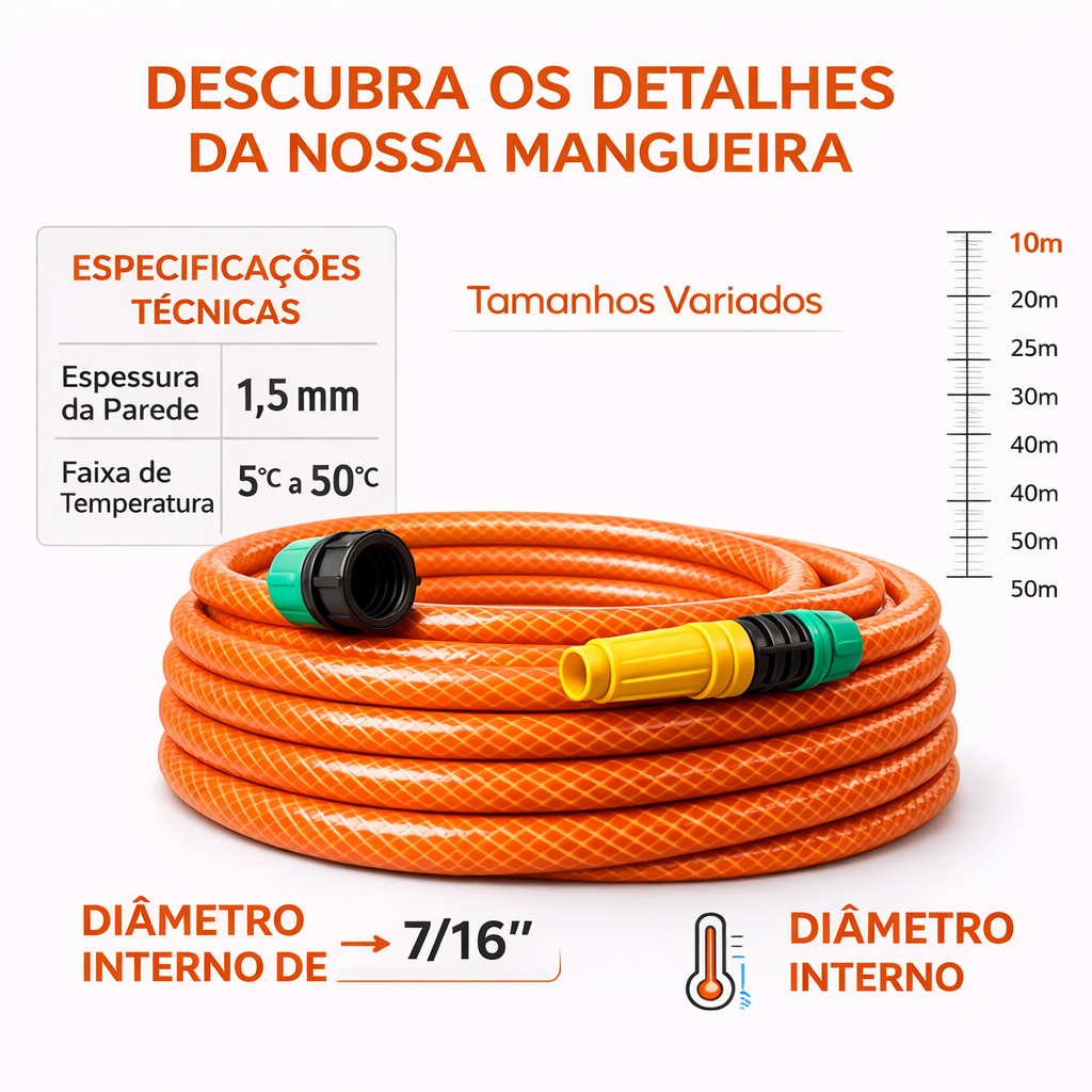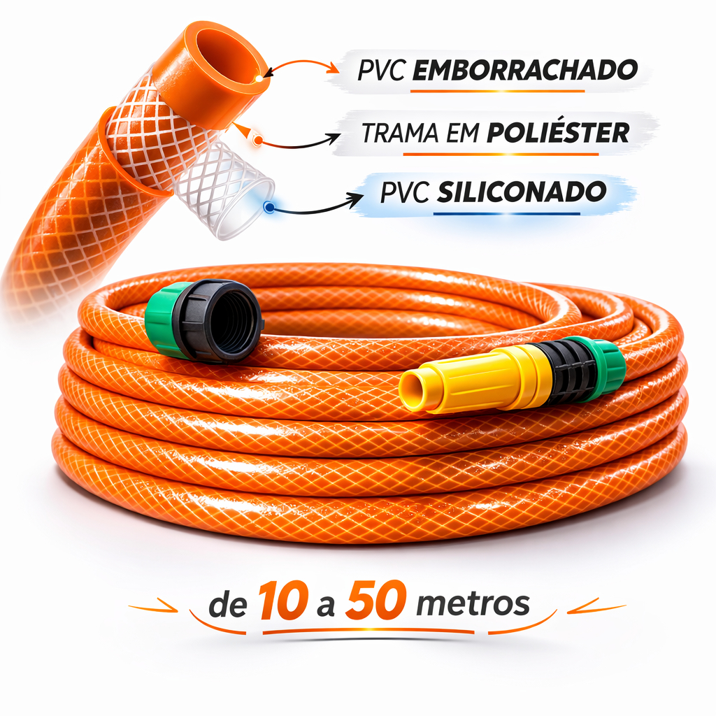 Mangueira Jardim Trançada Laranja 50 Metros Mangueira Pronta para uso.