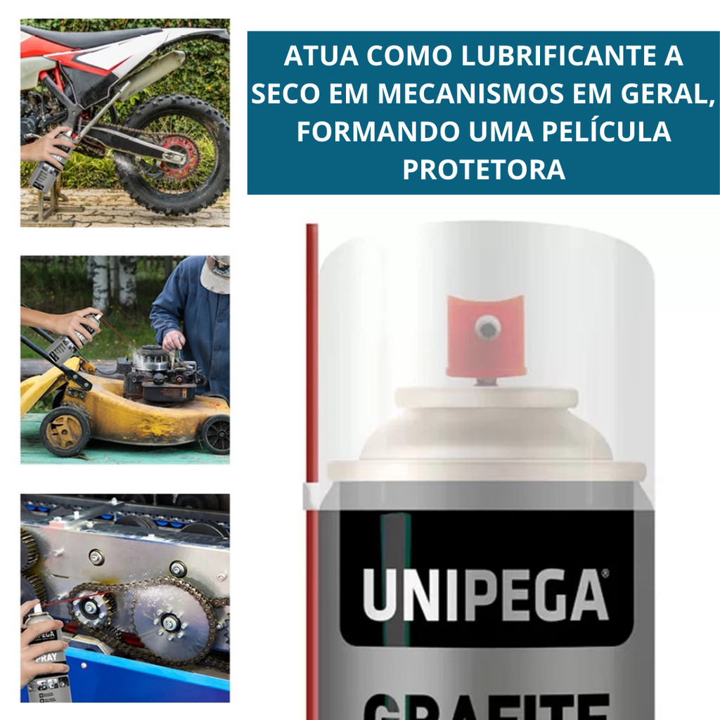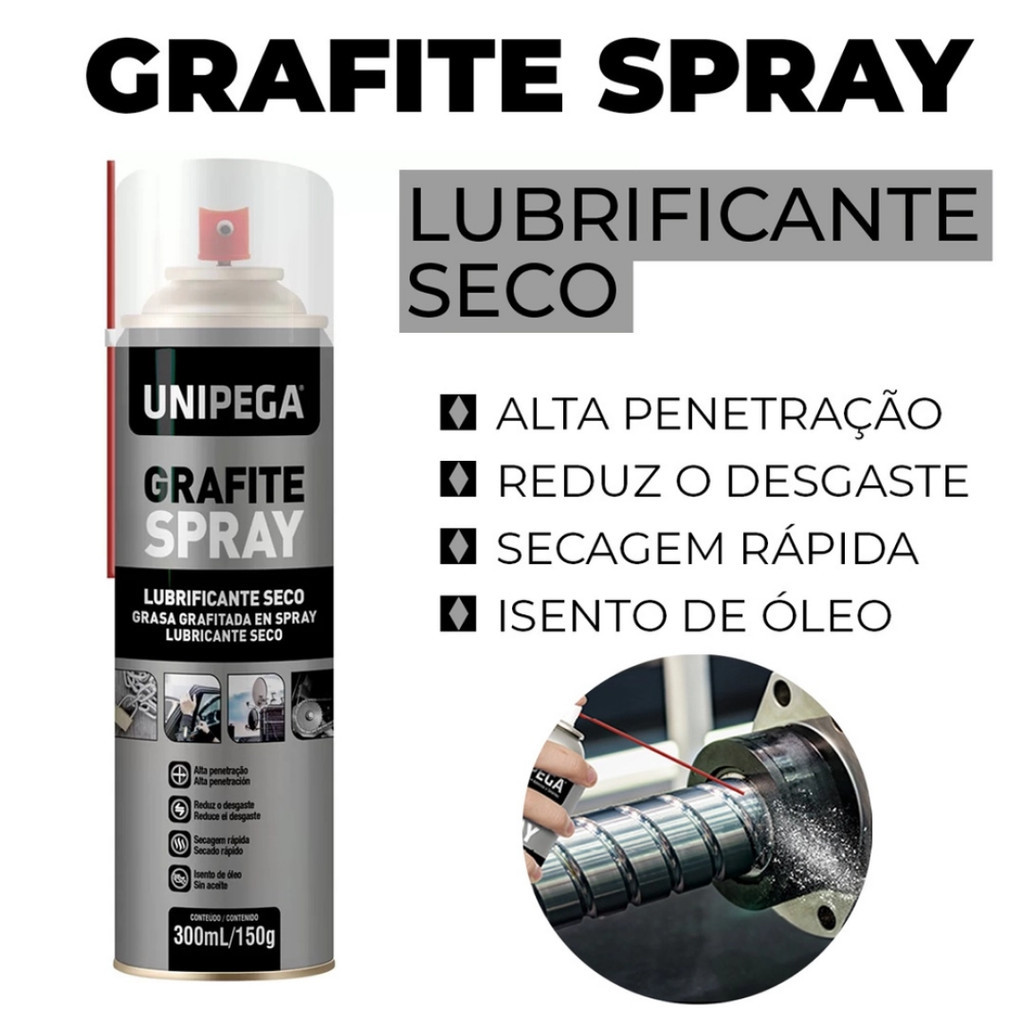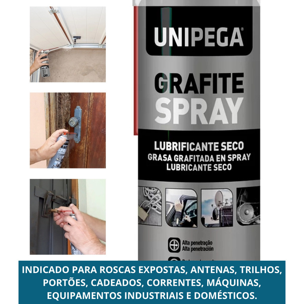 Grafite Spray Lubrificante A Seco 300ml Unipega Para Cadeado Fechadura Portão Corrente Trilho Antena