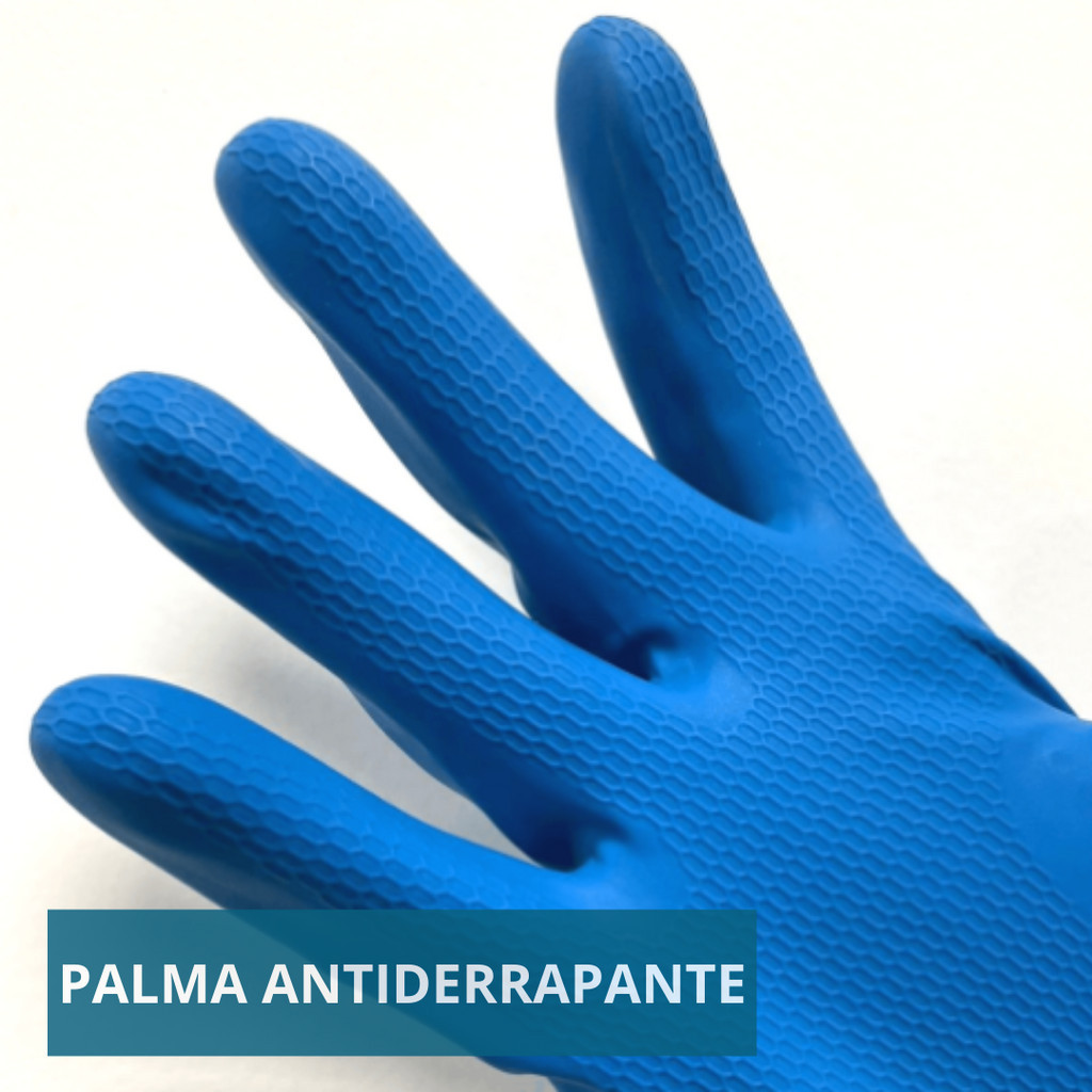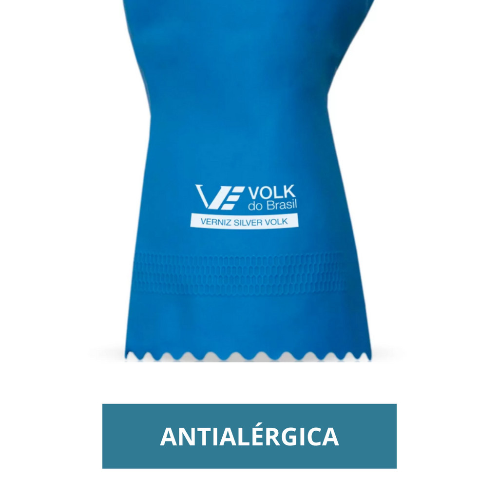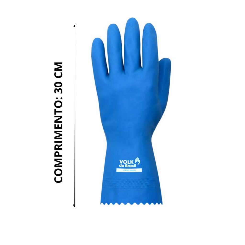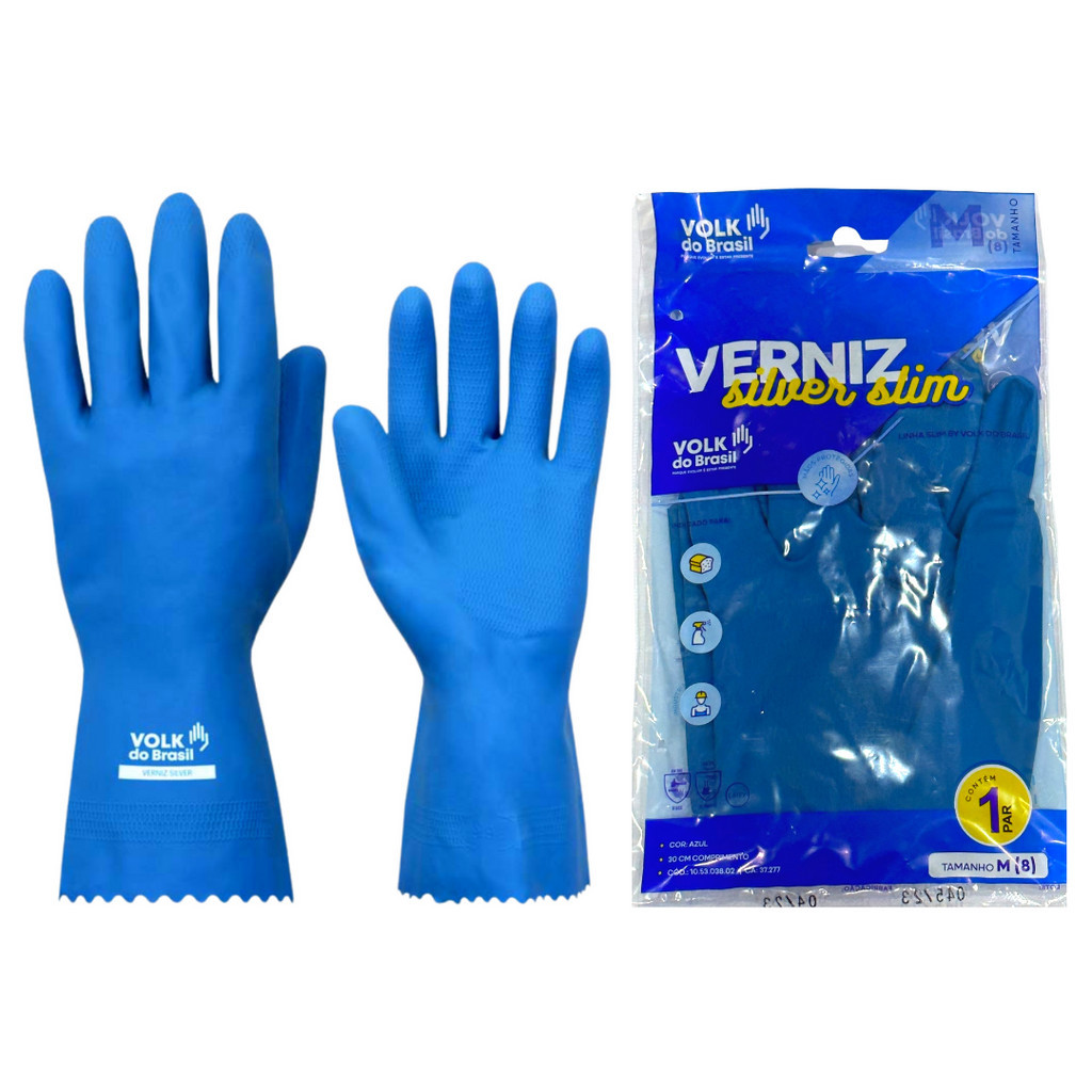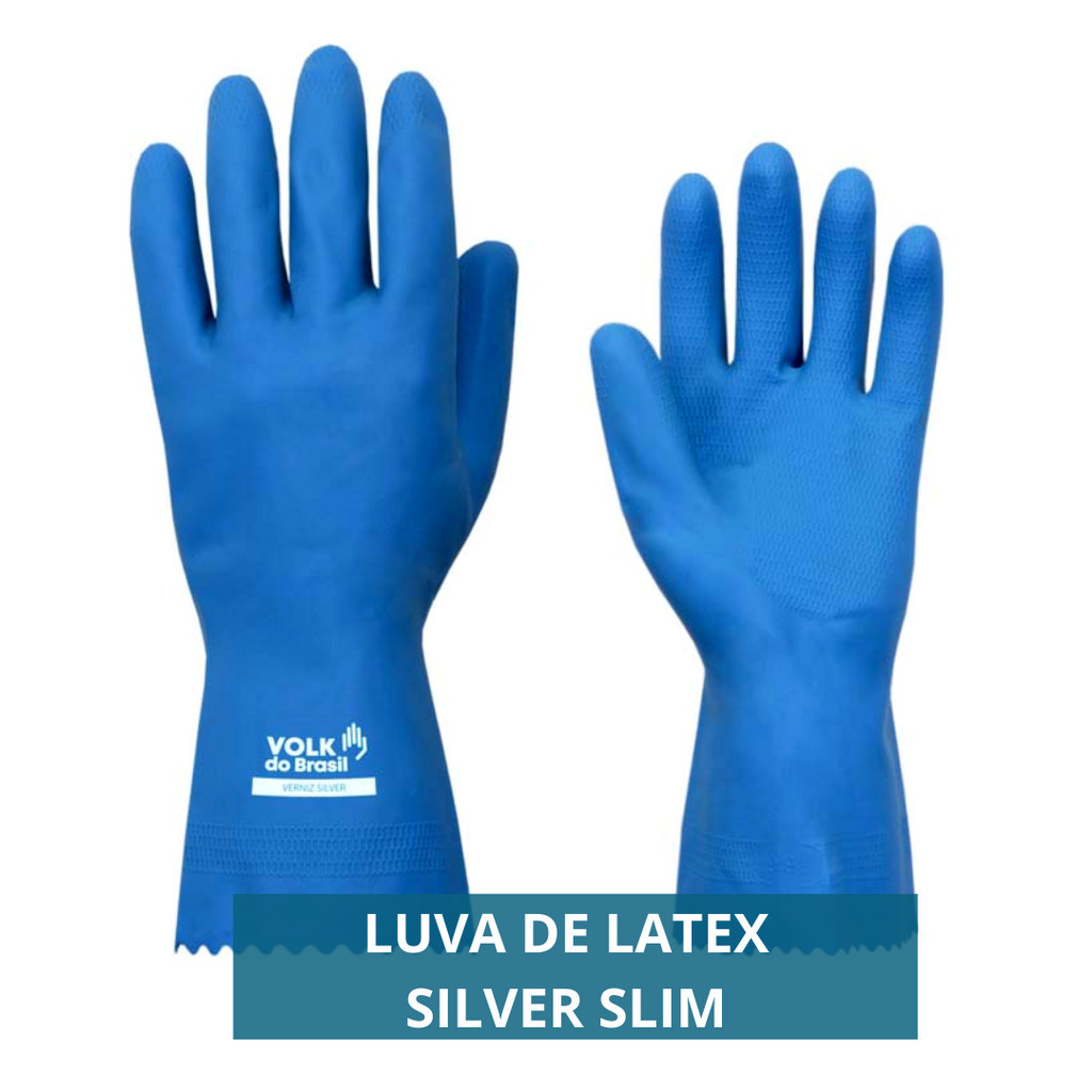 Luva De Latex Natural Verniz Silver Slim Azul Antialérgica Volk Para Limpeza Lavar Louça Proteção Epi