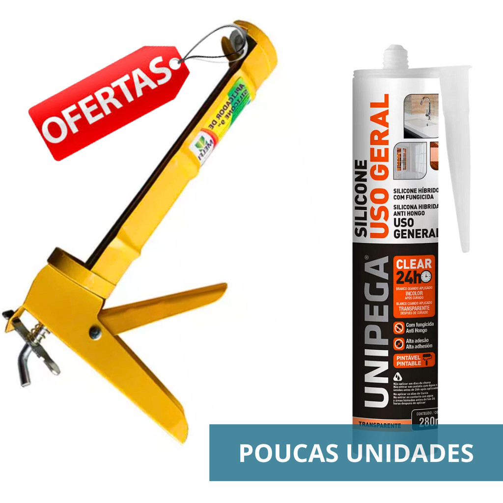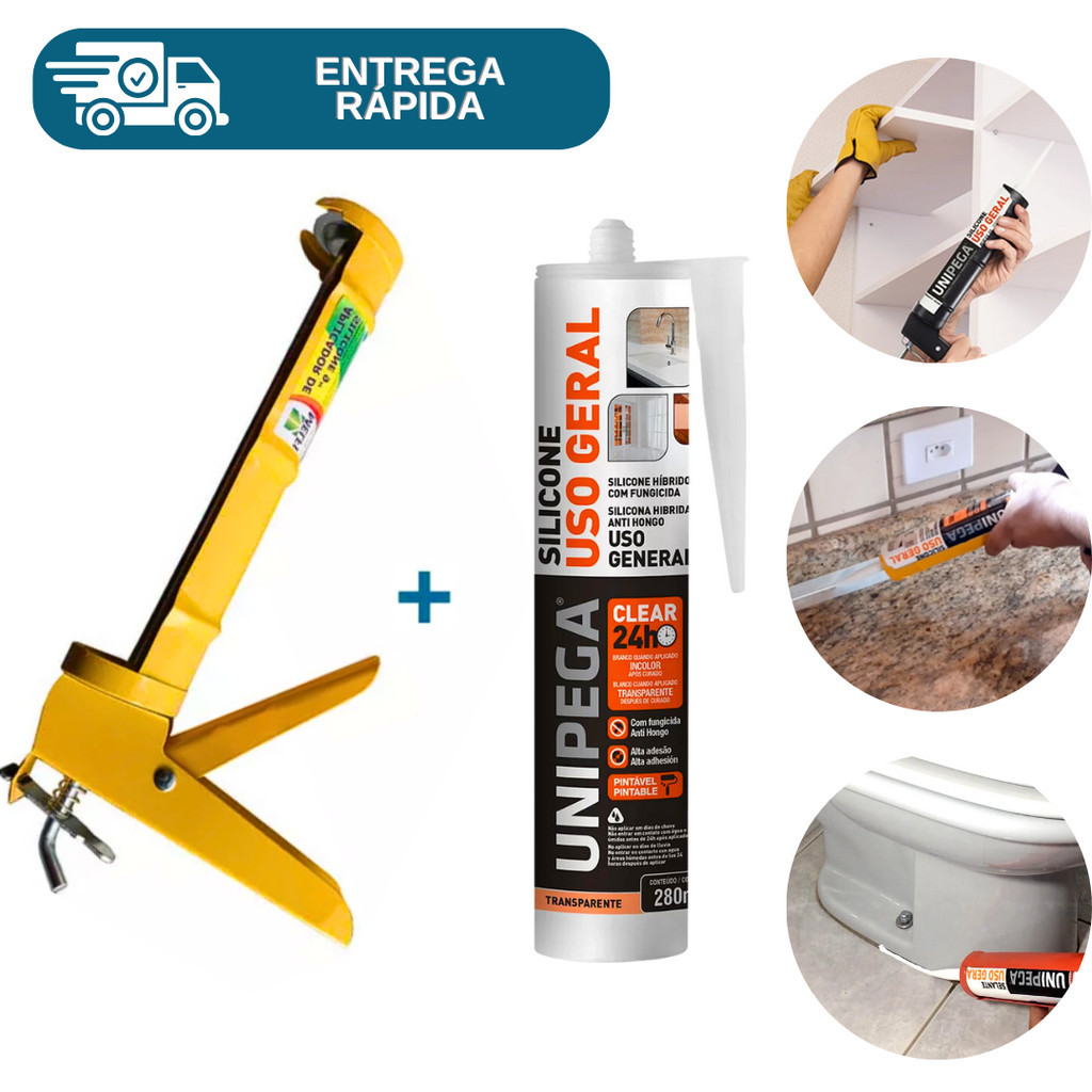 Kit Silicone Hibrido Uso Geral + Pistola Aplicador De Silicone Selante Cola Vedação Vidro Pia Box
