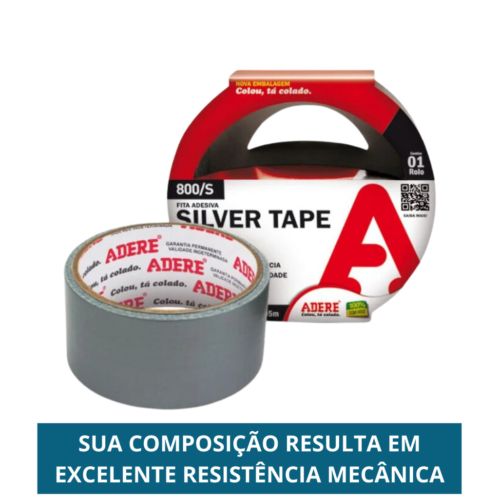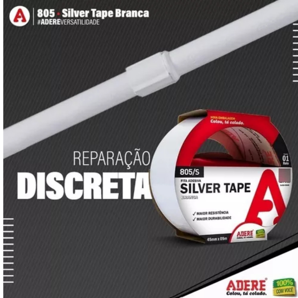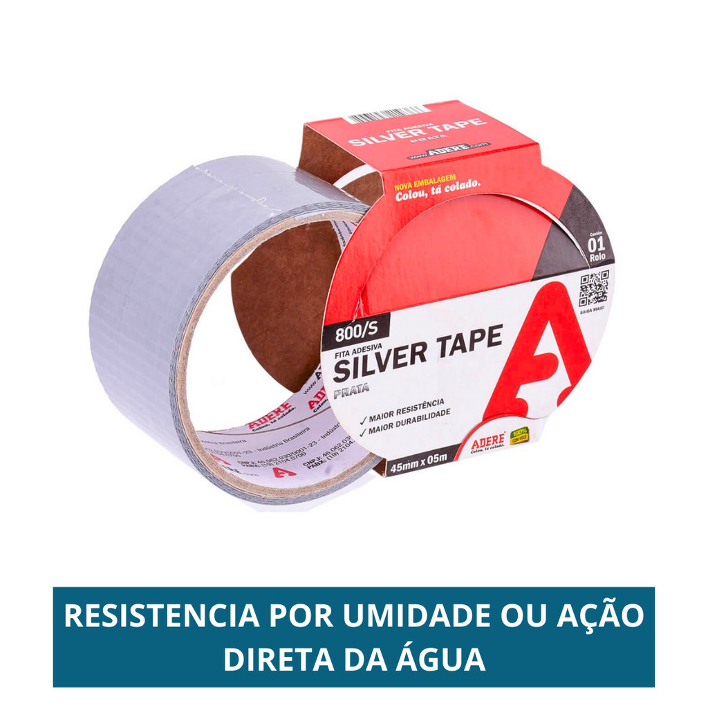 Kit 2 Fita Adesiva Silver Tape 45mm X 5m Adere Reforçada Super Resistente Multiuso Vedação Flex