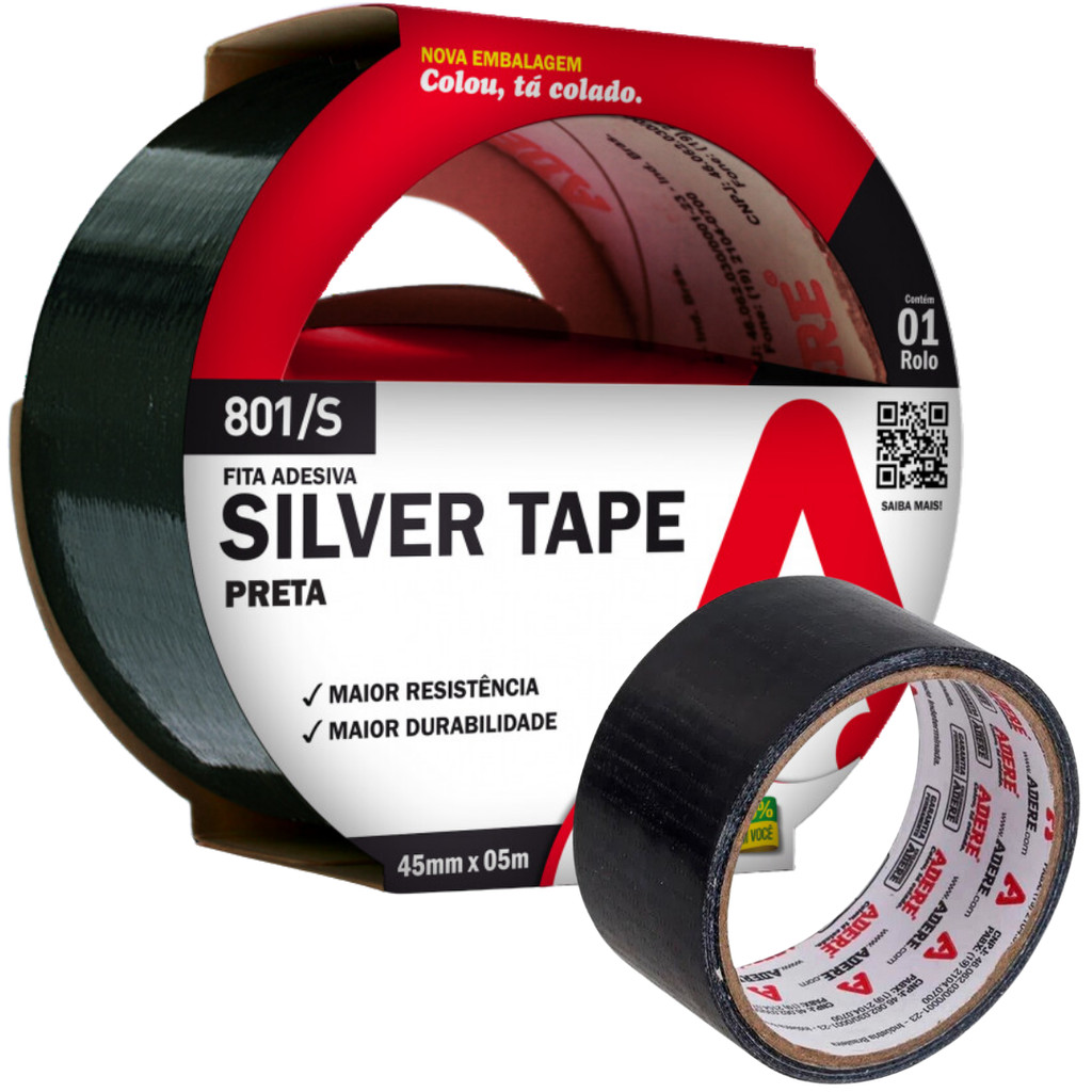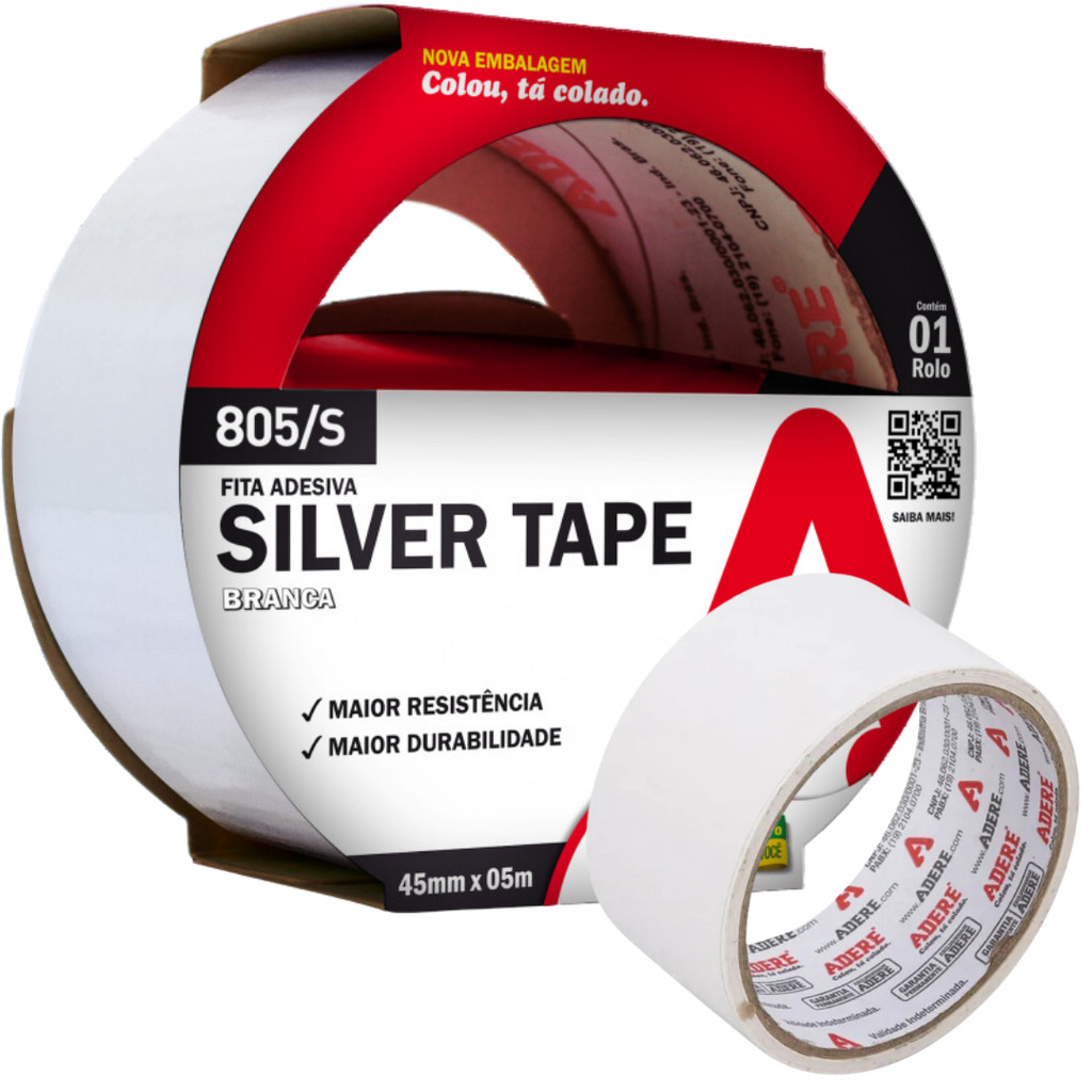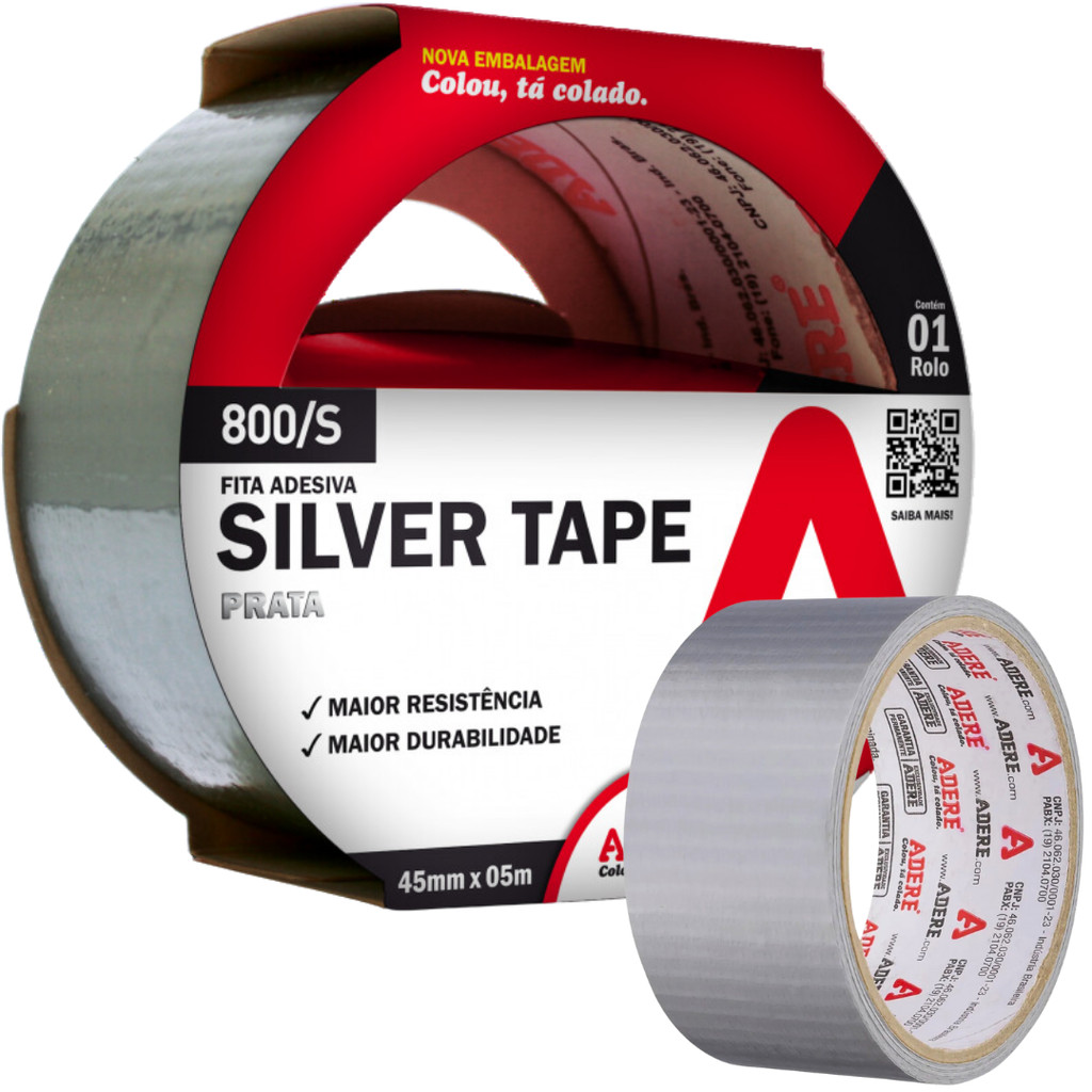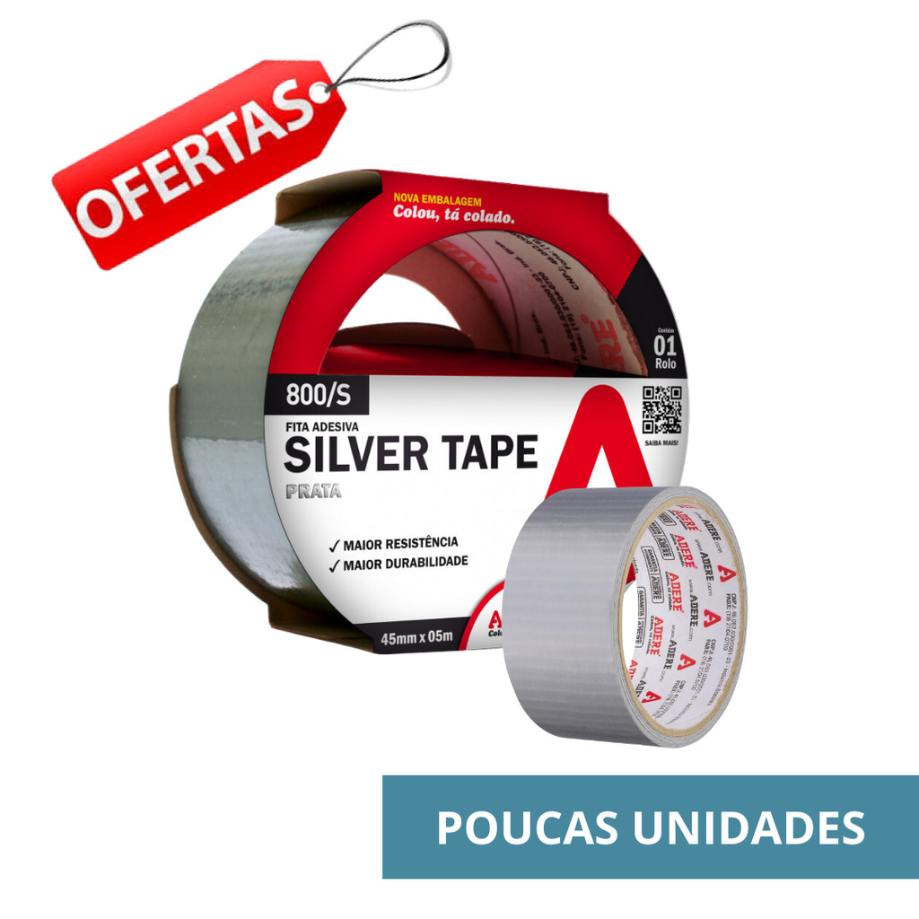 Kit 2 Fita Adesiva Silver Tape 45mm X 5m Adere Reforçada Super Resistente Multiuso Vedação Flex