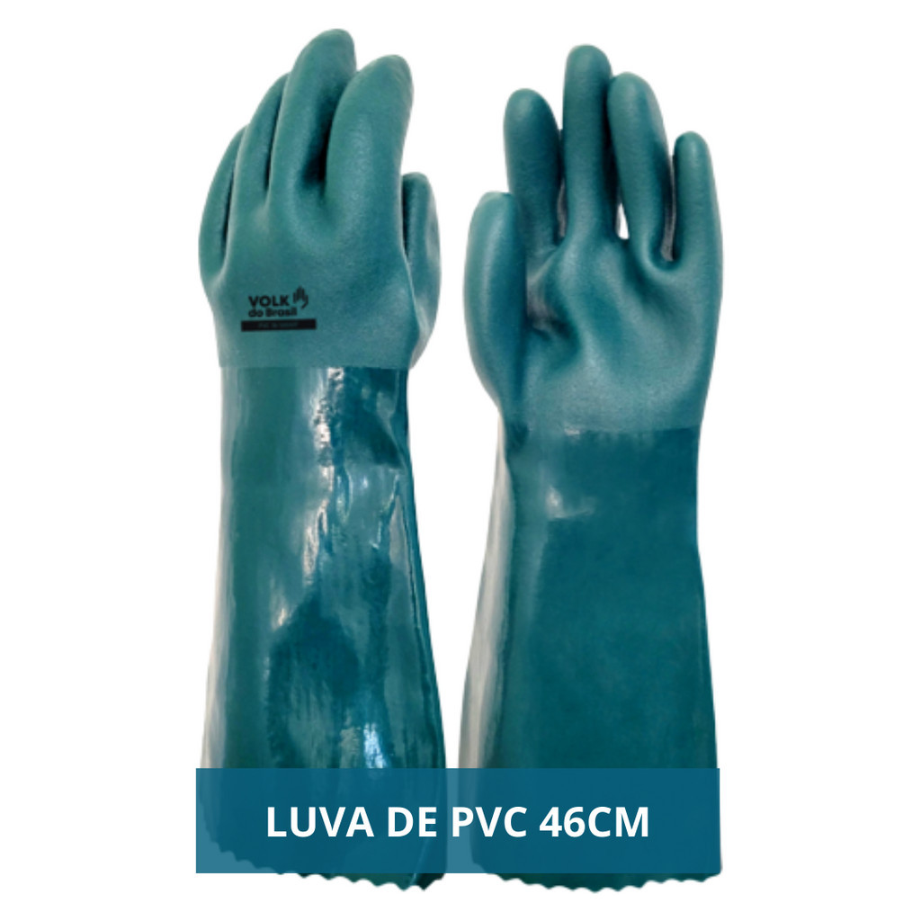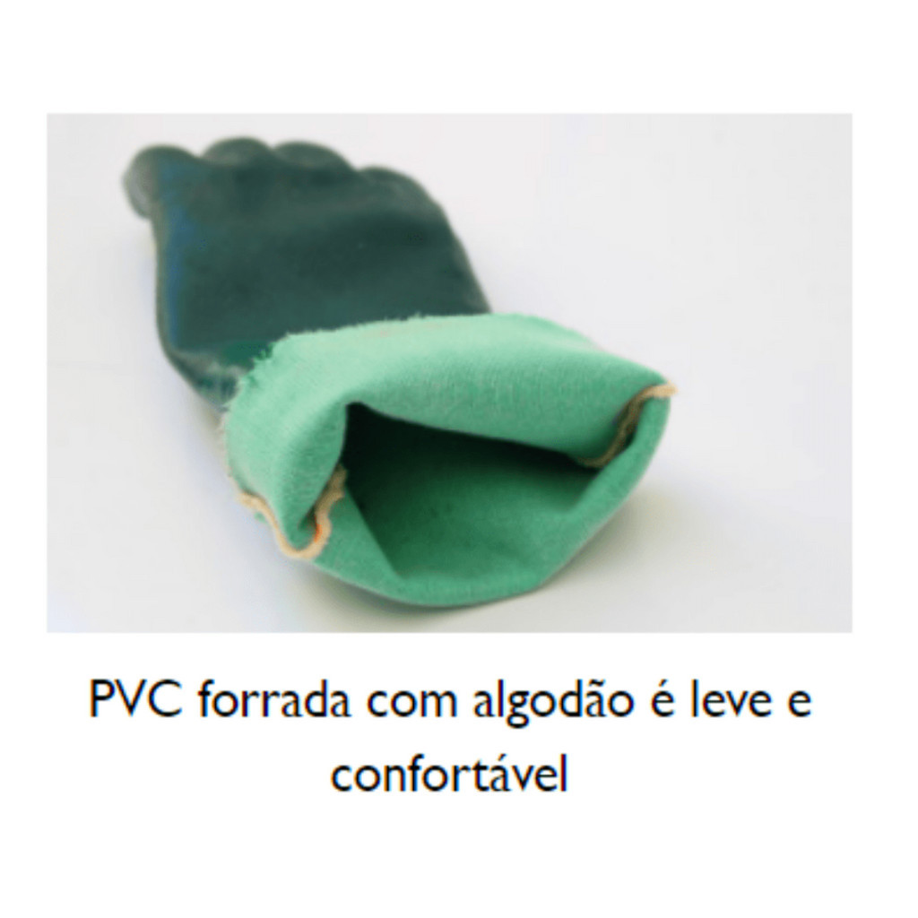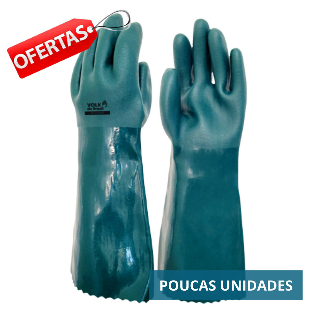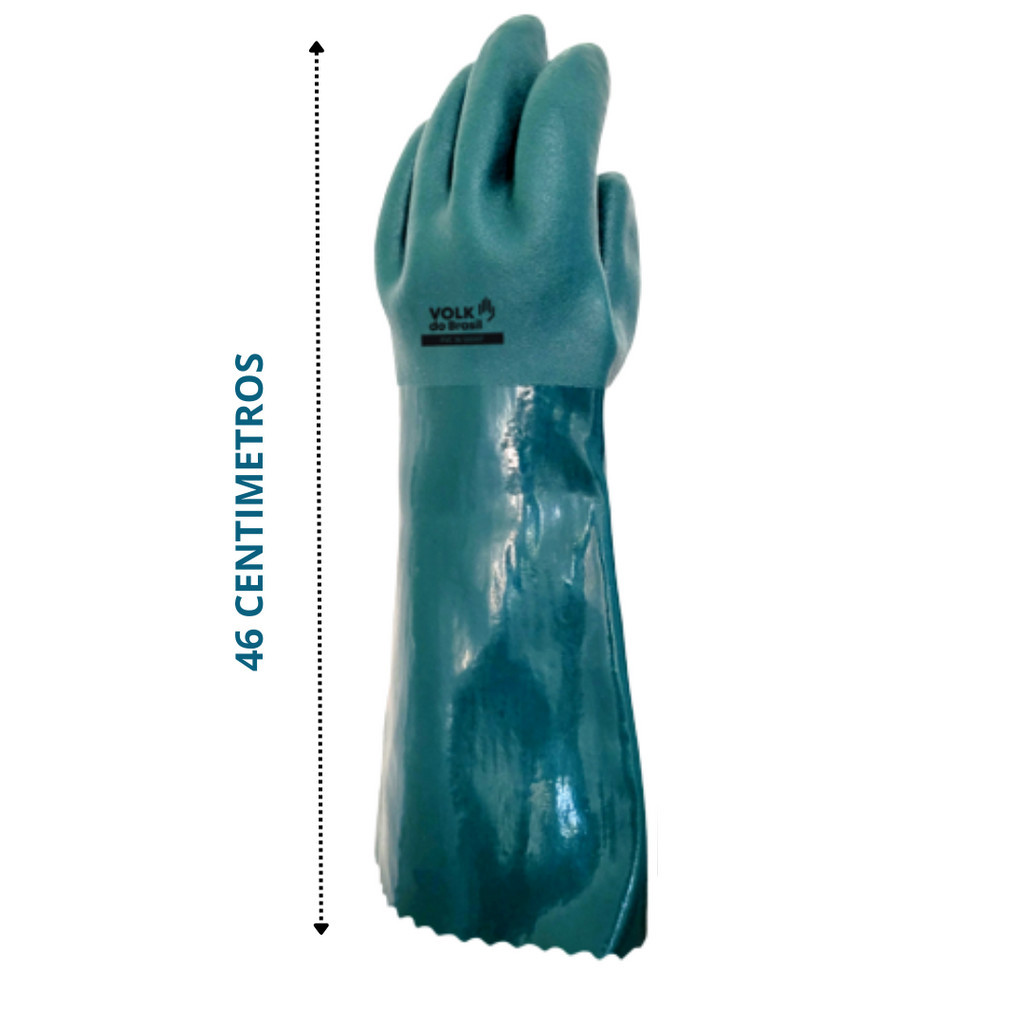 Kit 2 Prs Luva De PVC 46cm Verde Cano Longo Forrada Palma Áspera Resistente Proteção Química Esgoto Epi Volk