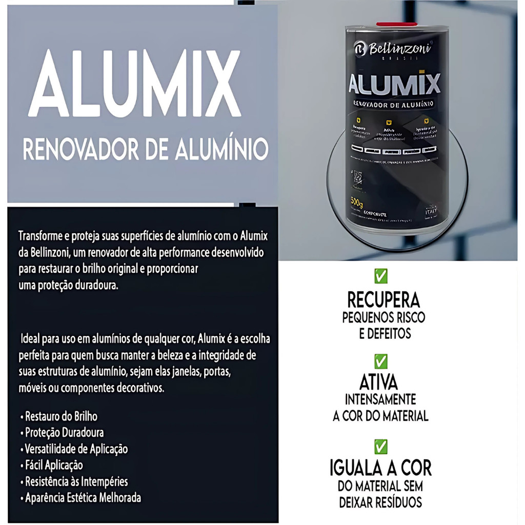 Renovador De Alumínio Alumix 500g Bellinzoni Ativador De Cor Brilho Proteção Porta Janela Móveis
