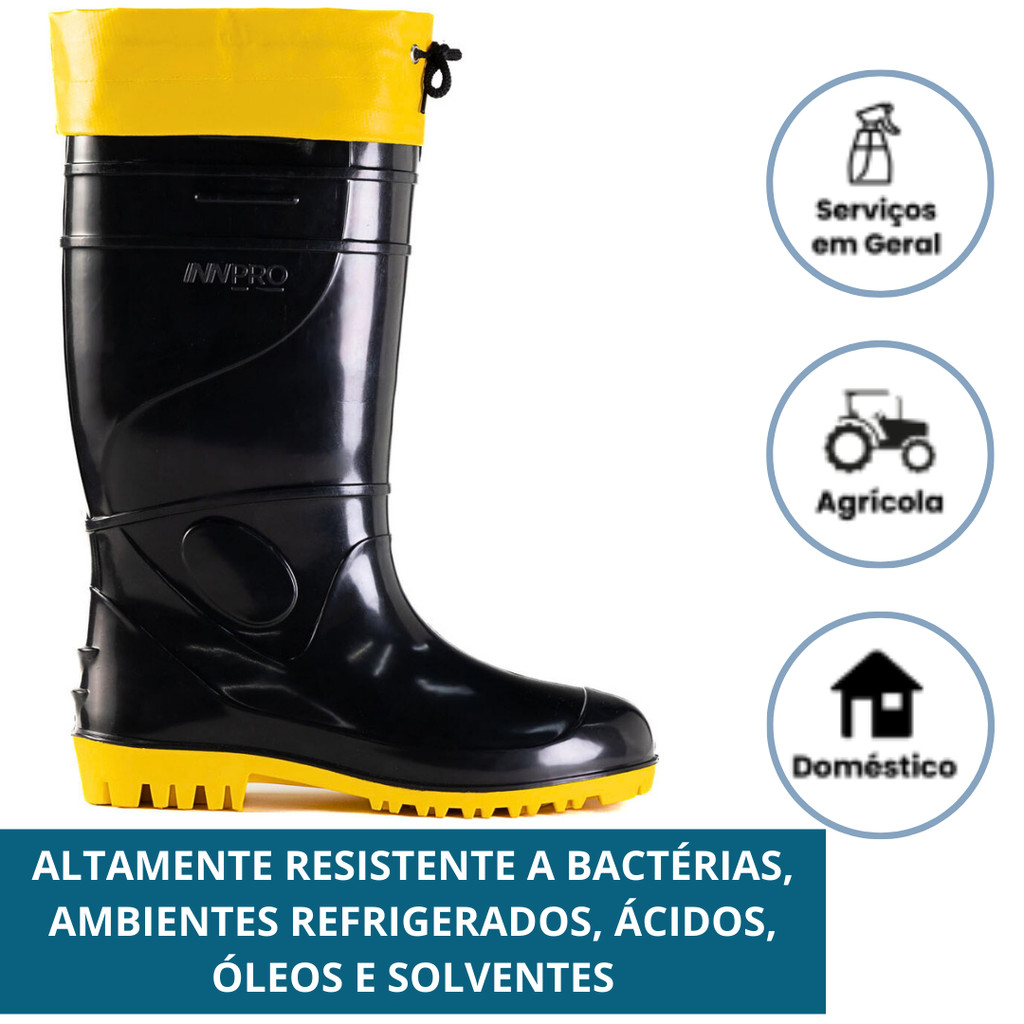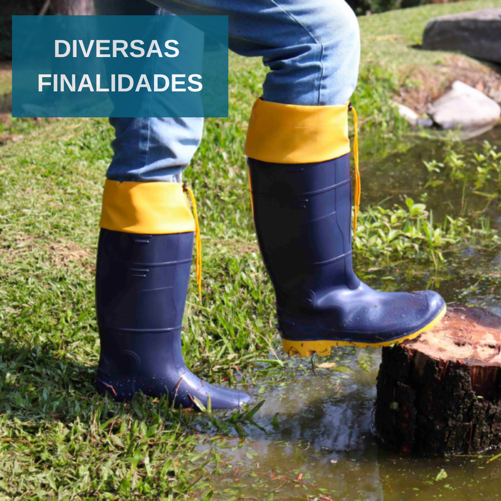Bota Borracha Pvc Galocha Cano Extra Longo Com Polaina Forrada Reforçada Impermeável Motoqueiro