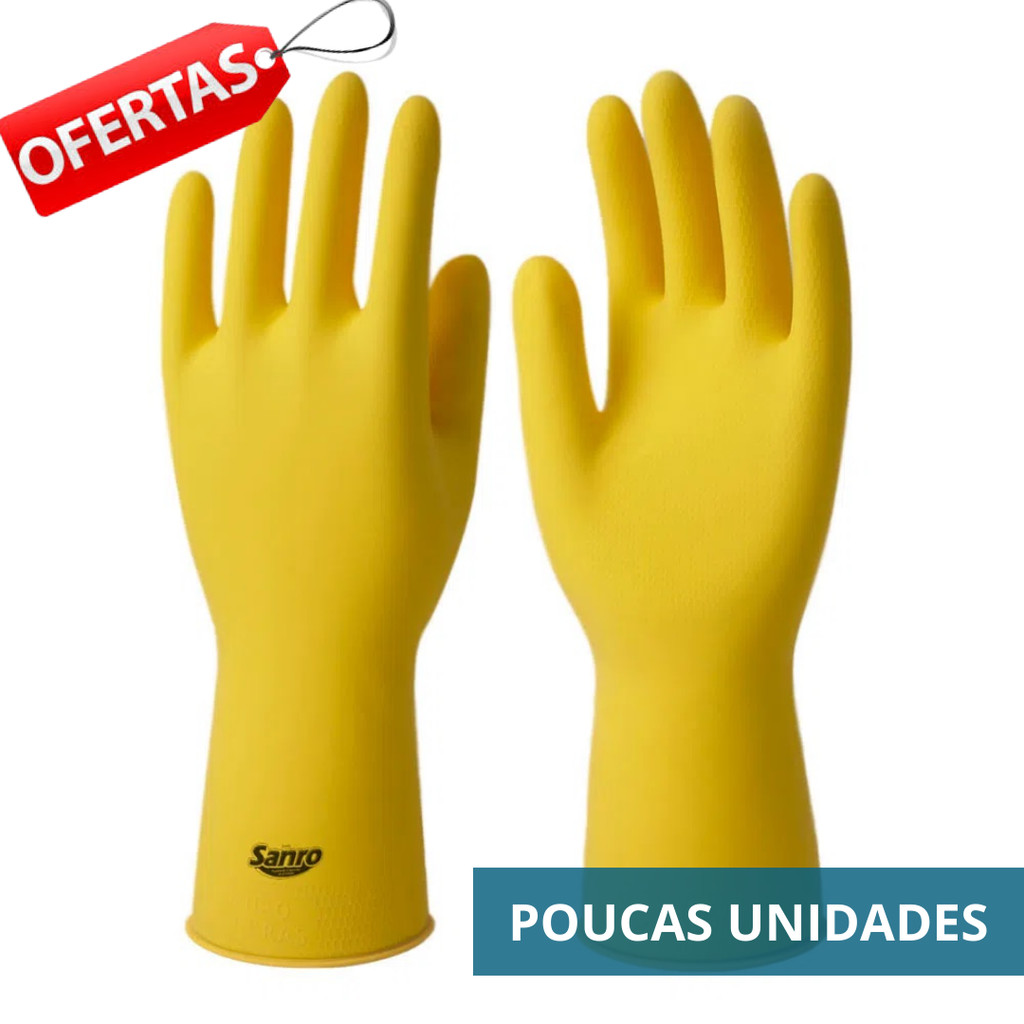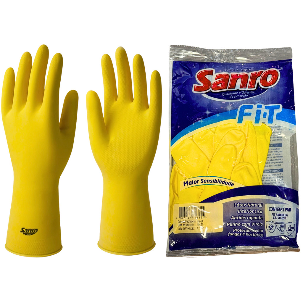 Kit 5 Prs Luva Látex Multiuso Antiderrapante Sanro Fit Proteção Impermeável Limpeza Louça Faxina Epi