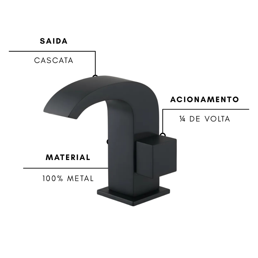 Torneira de Pia para Banheiro Cascata Luxo Black Baixa C80