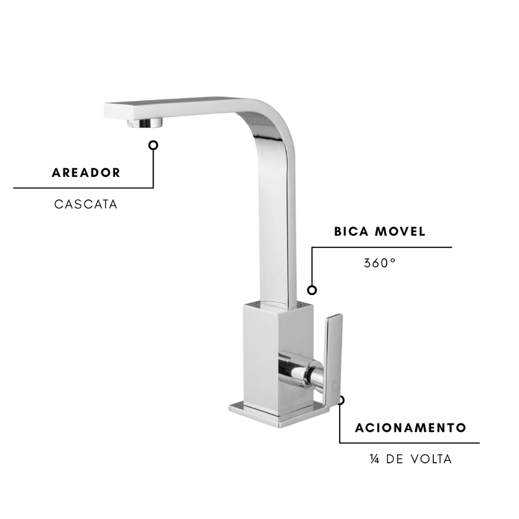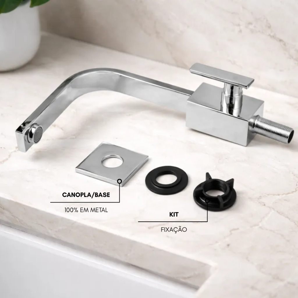 Torneira de Pia para Banheiro Cromada Quadrit Bica Móvel 360° 100% em Metal