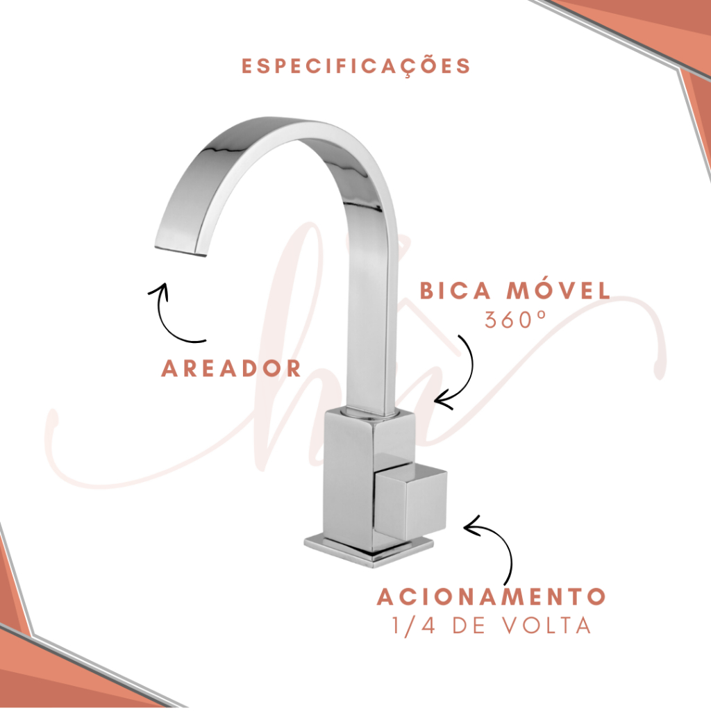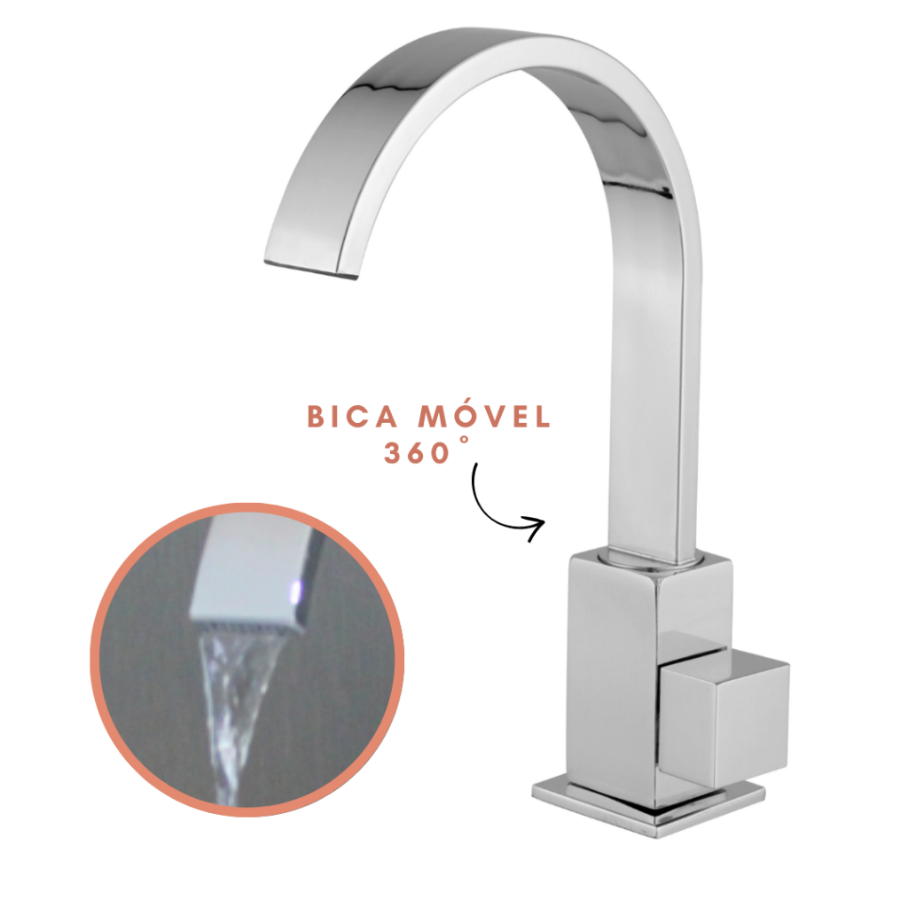 Torneira Banheiro Cromada Cascata Bica Baixa Móvel