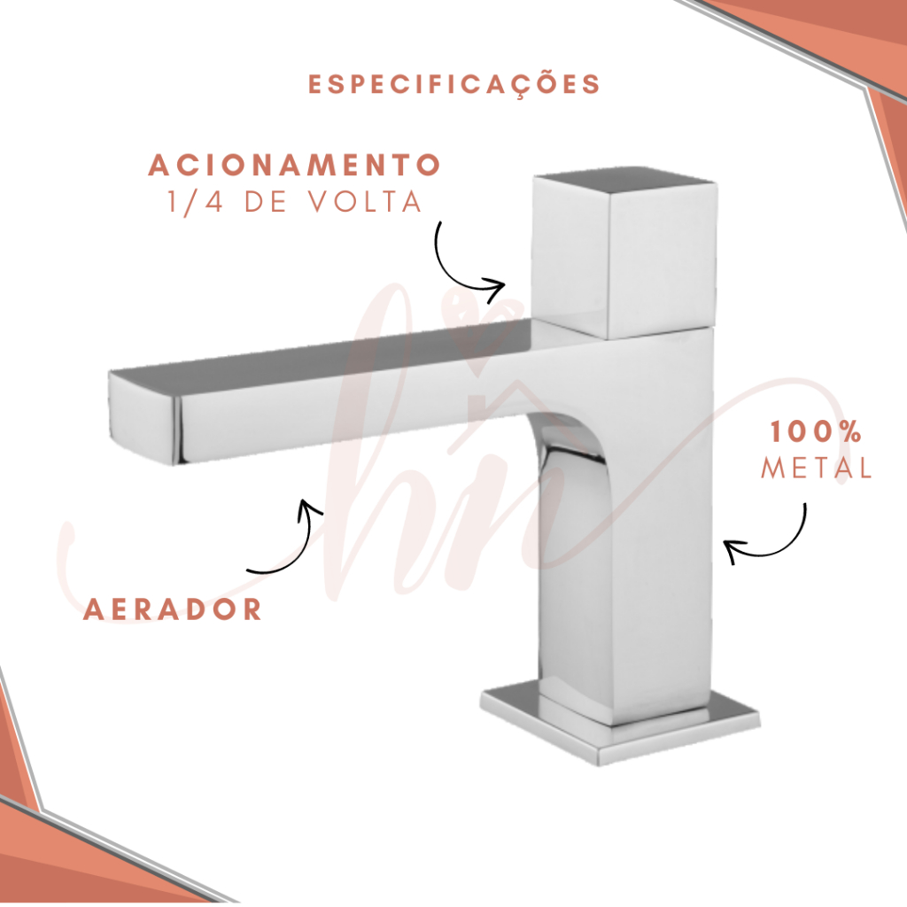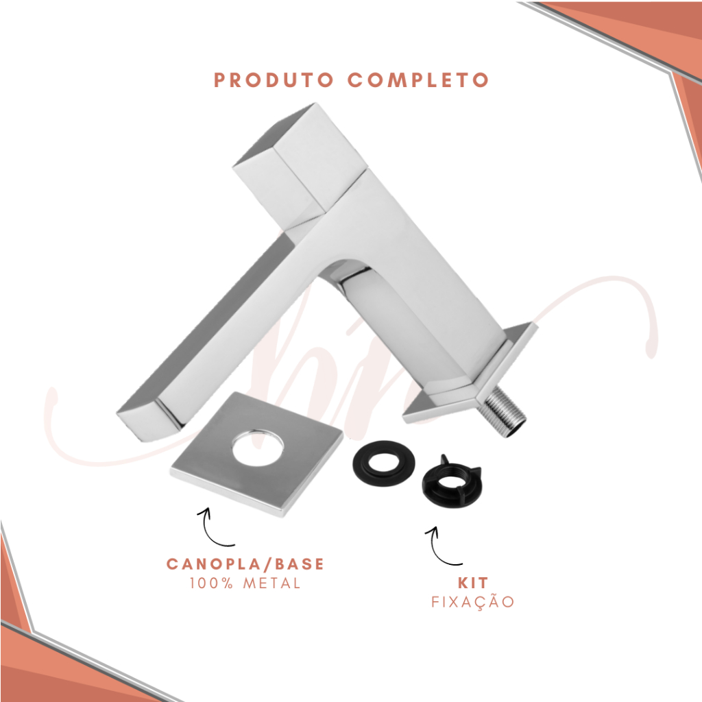 Torneira de Pia para Banheiro Quadrada Cromada Bica Baixa C80