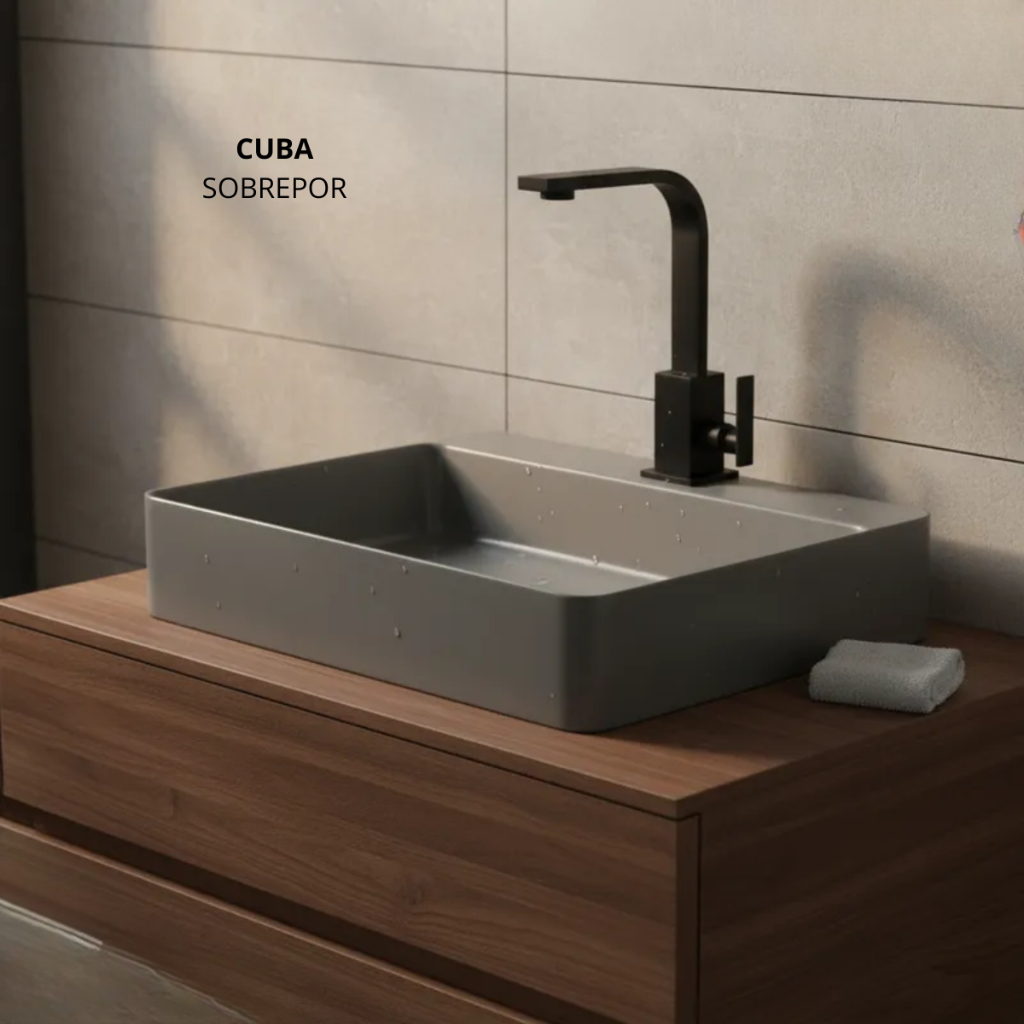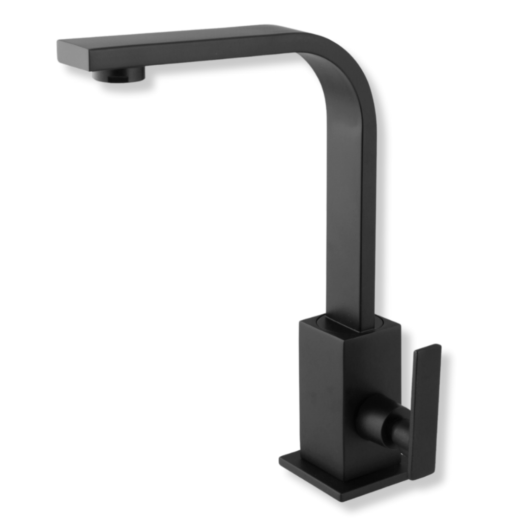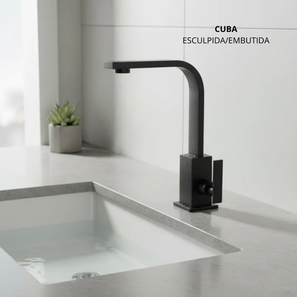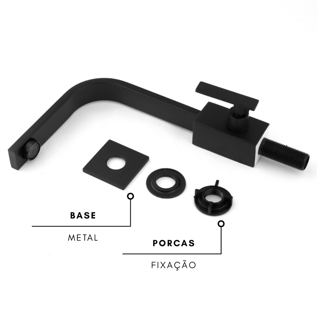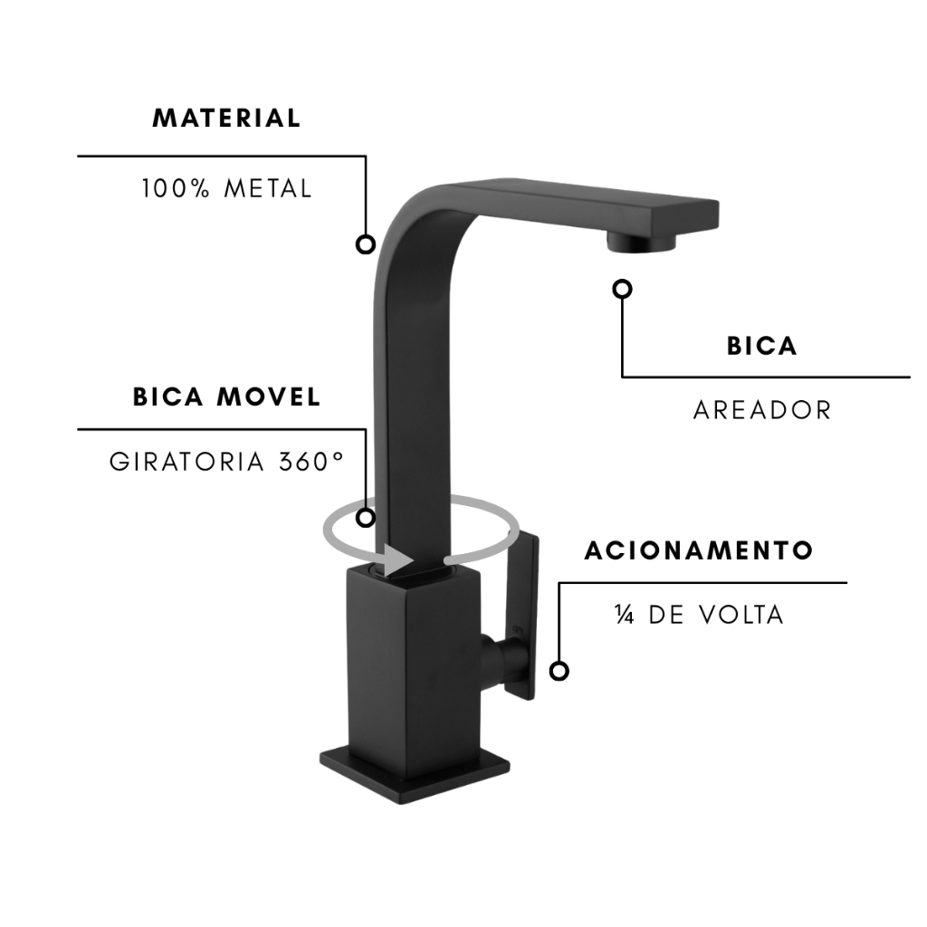 Torneira de Pia Banheiro Quadrit Preta Metal Bica Móvel 1/4 de Volta