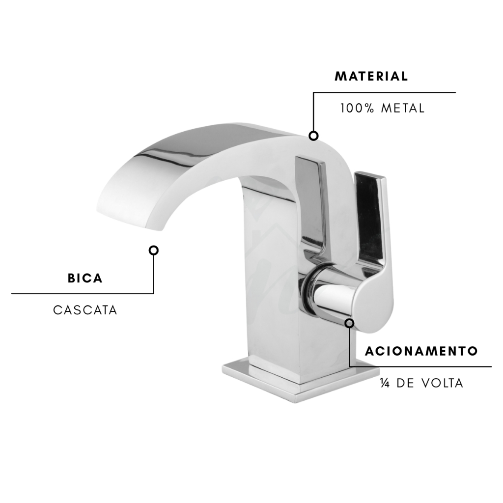 Torneira de Pia para Banheiro Cascata Cromada Bica Baixa 1/4 De Volta !00% Metal