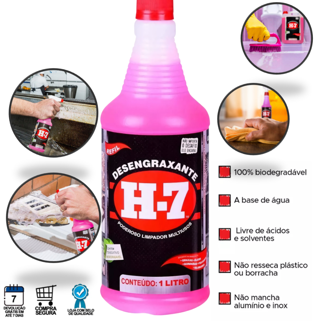 H7 Desengraxante Removedor Multiuso Limpeza Pesada H-7 Eficiente Biodegradável Alta performance
