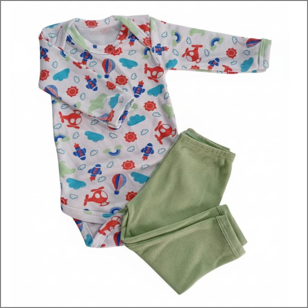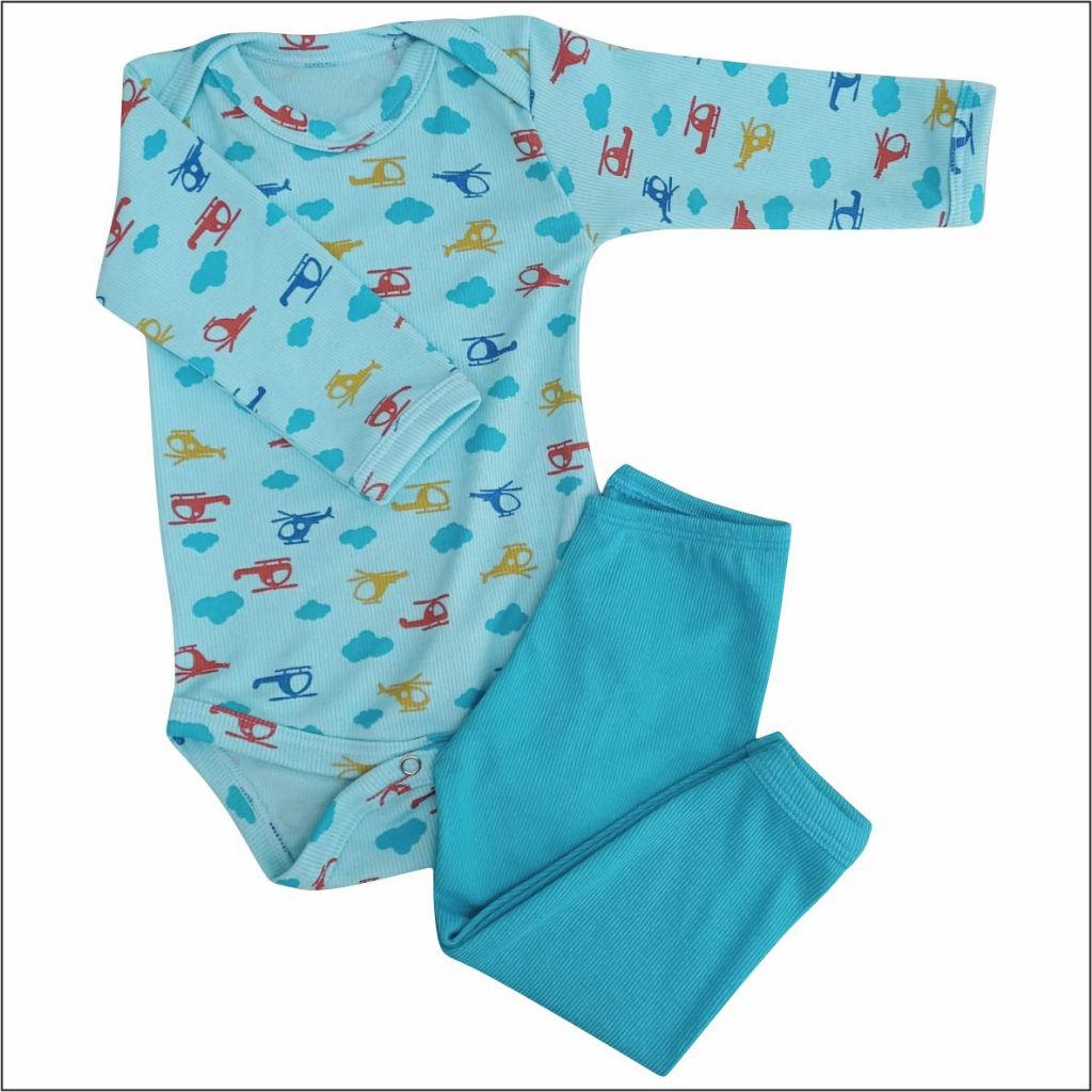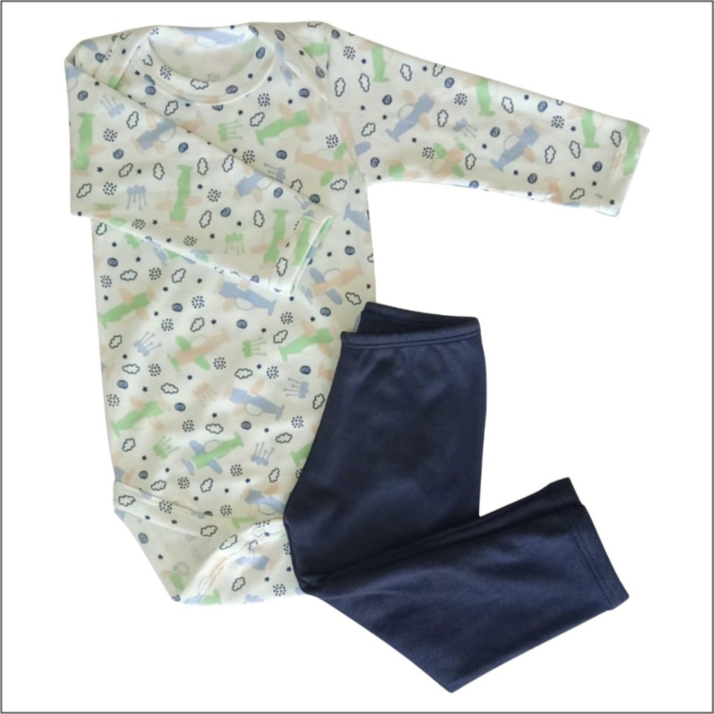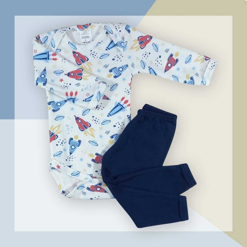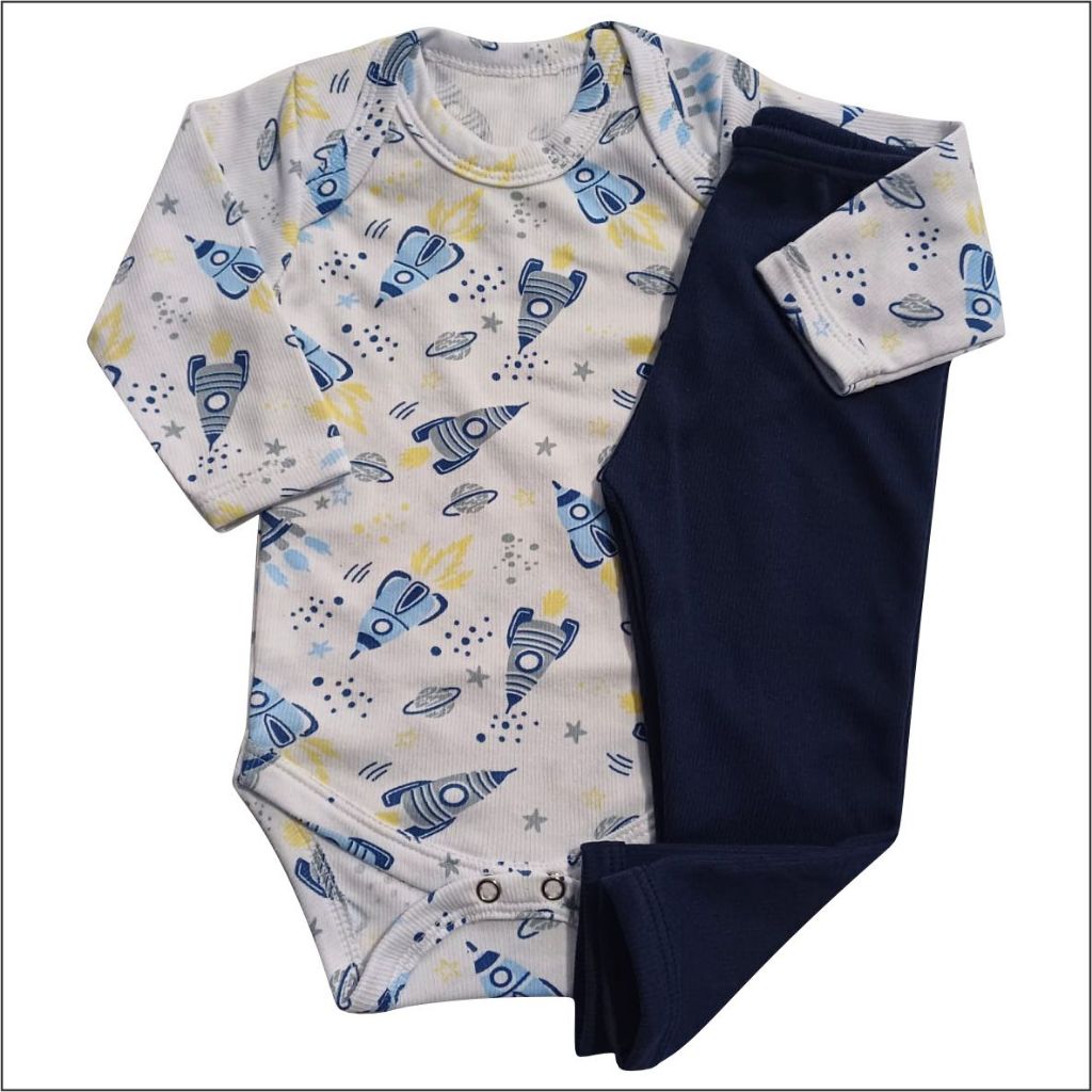 Body bebê manga longa com calça /Conj mijão tam Rn ao 2 anos Menino malha canelada meia estação.