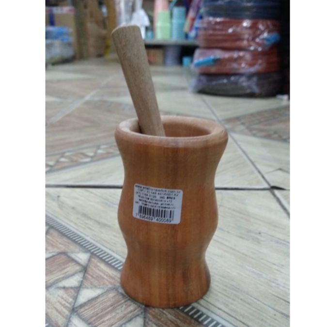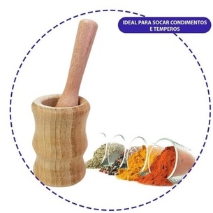 Pilão De Madeira Com Socador Para Alho Temperos Pilaozinho