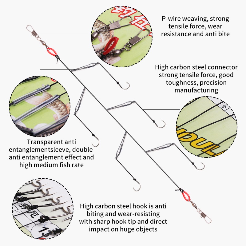 Anzóis De Pesca (Um Conjunto De 5) Iseni High Horsepower Anti-Tangling Com Anzol De Borracha Cordas Amarrar A Isca Artificial