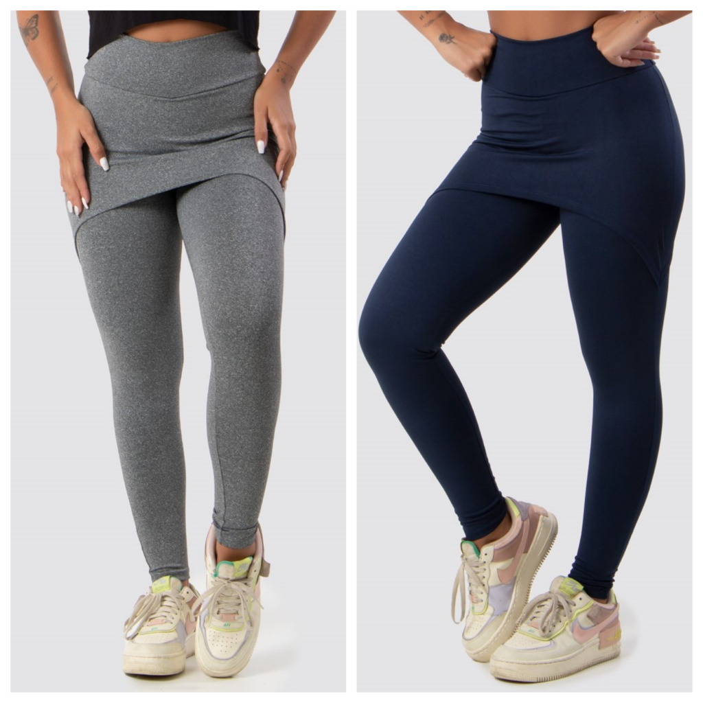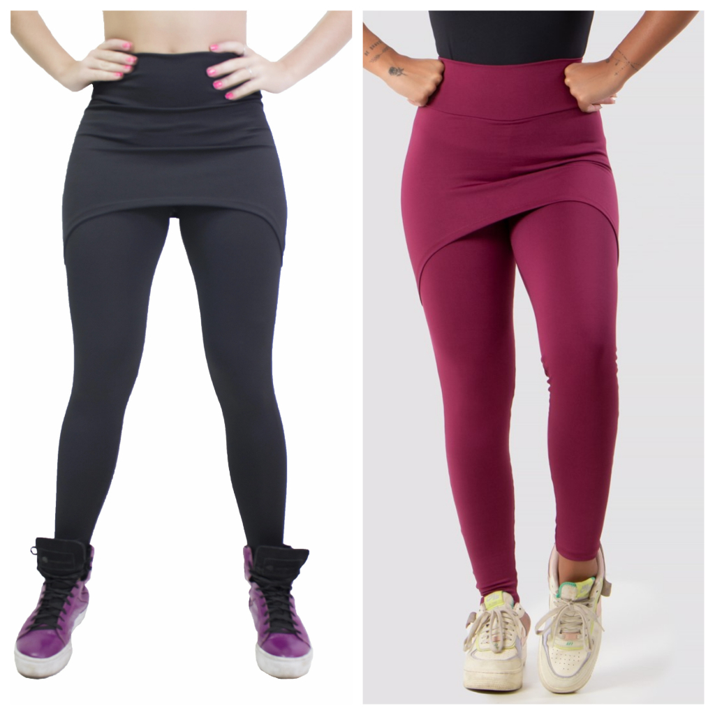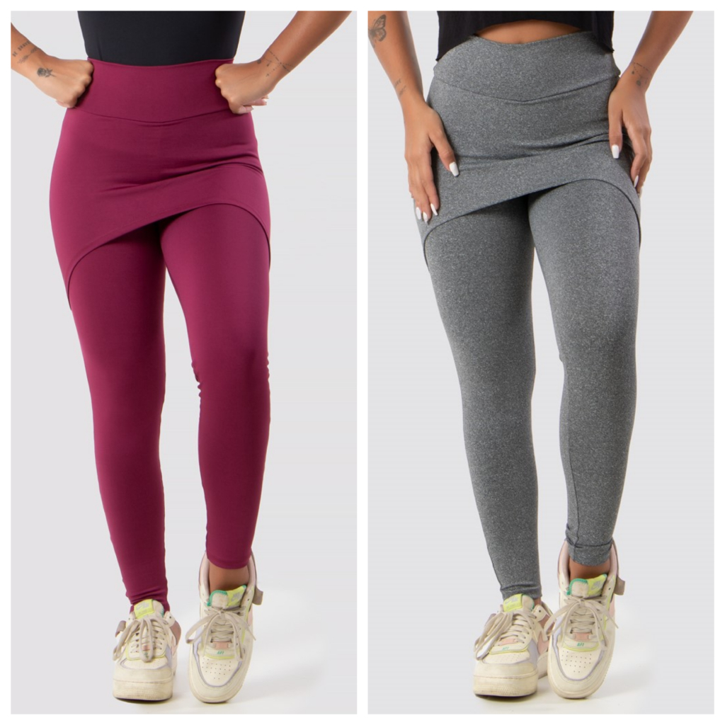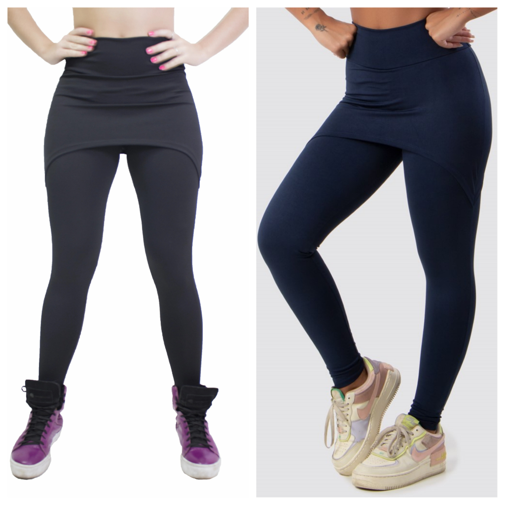 Kit 2 Calças Saia Lisa Feminina Suplex Academia Fitness