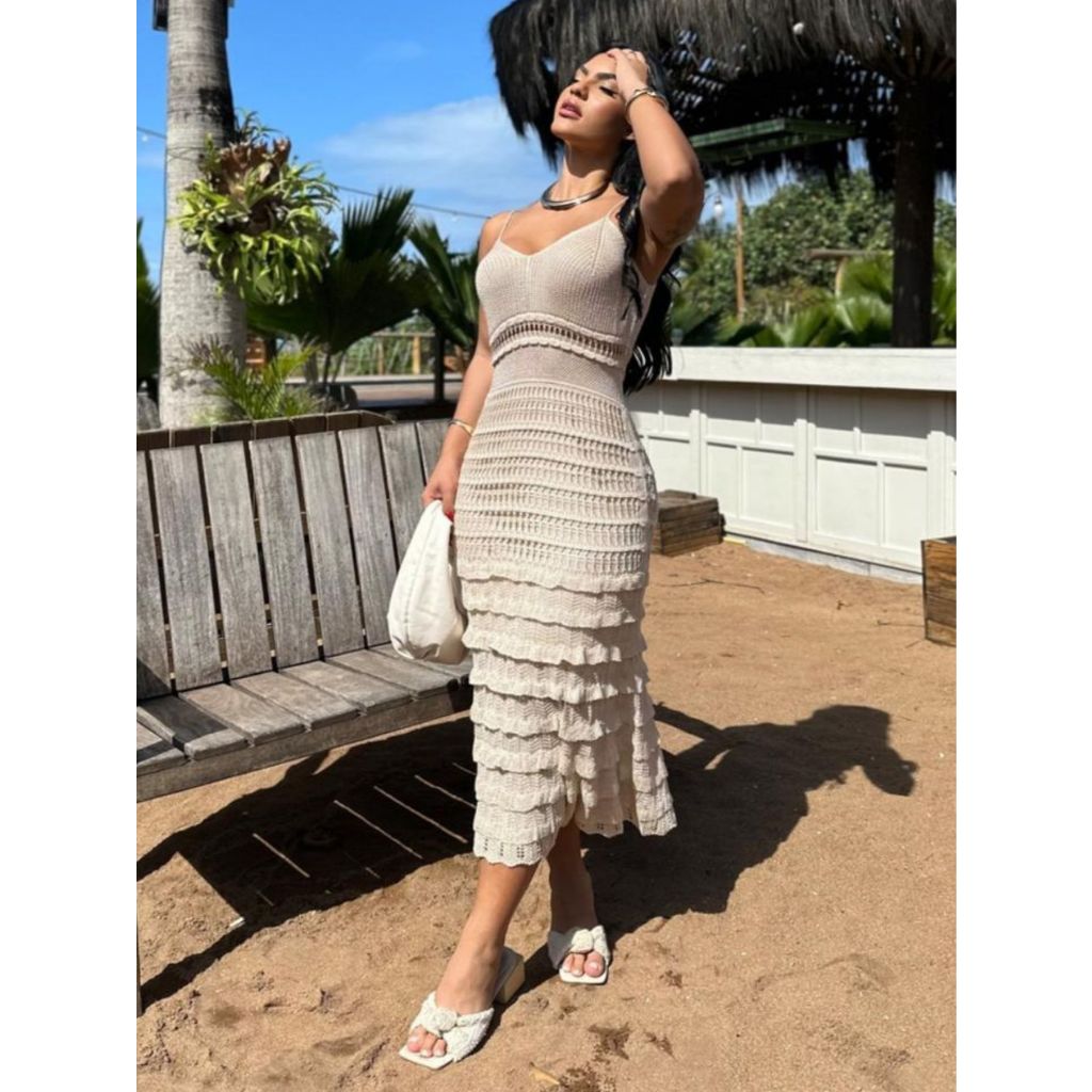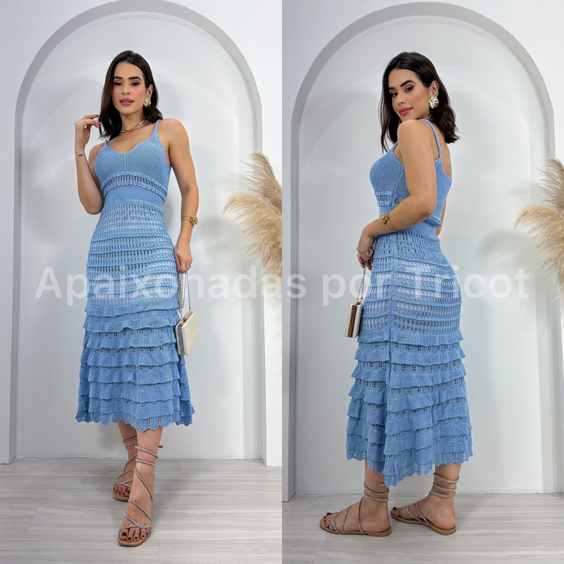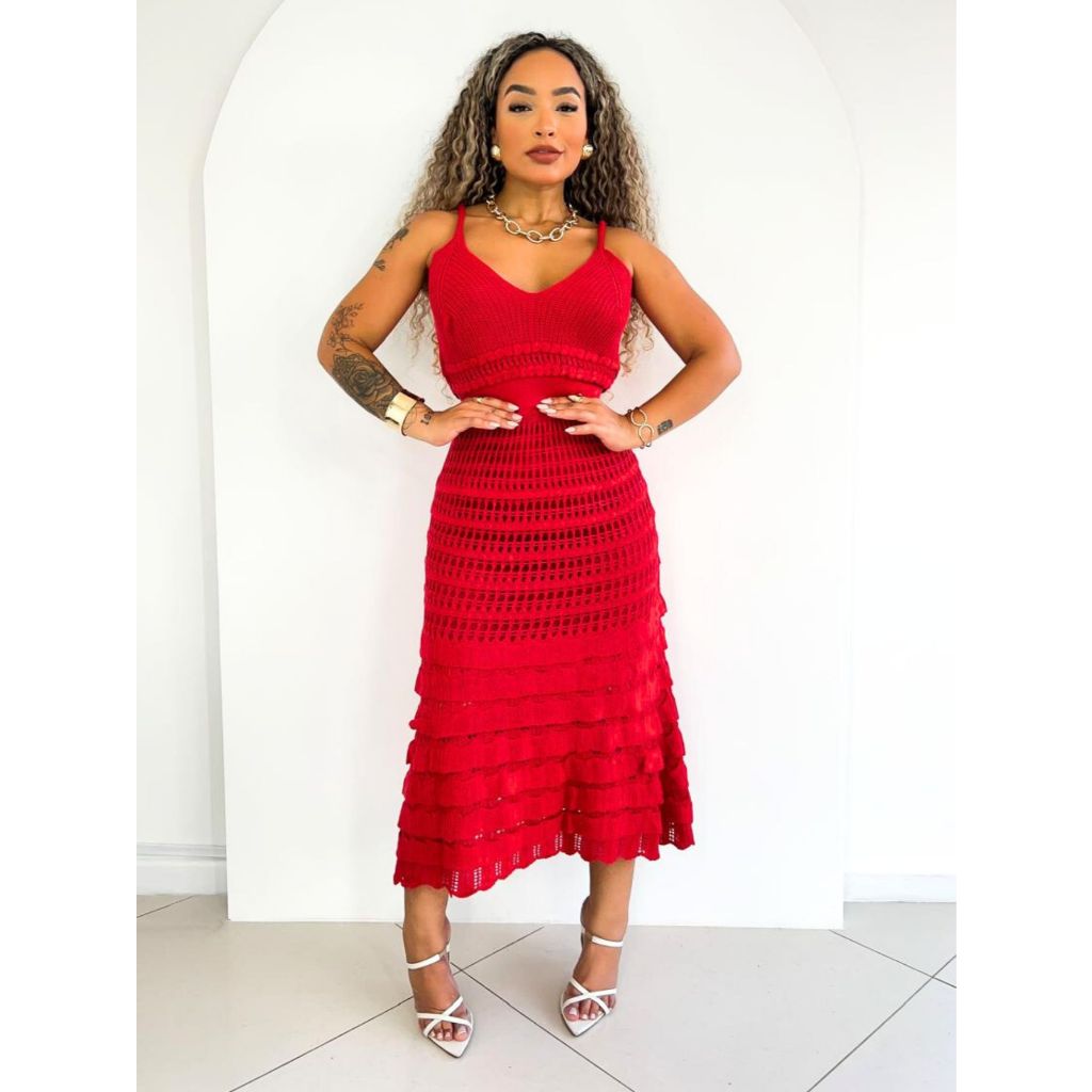 Vestido Babado Midi com forro Tricô Elegante Vestido tricot Vestido Tricô Vestido crochê Vestido Babados
