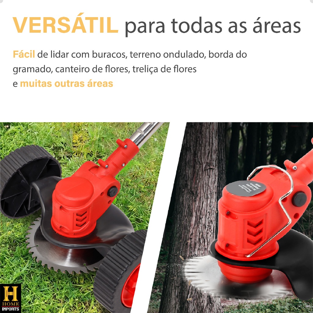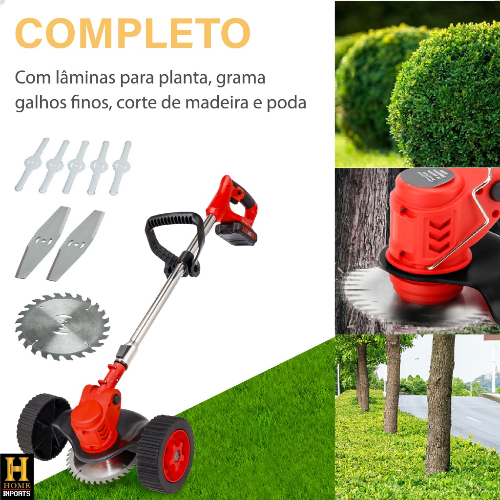 Roçadeira Elétrica Recarregável Profissional Com Rodinhas E 2 Baterias 24v Linha Premium