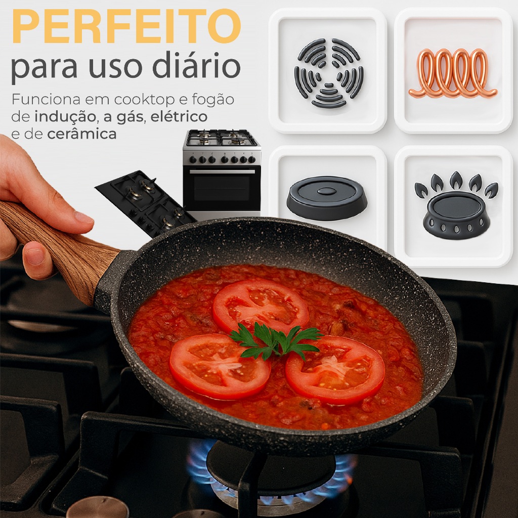 Frigideira Antiaderente De Indução Cerâmica Polida Alta Qualidade Linha Premium