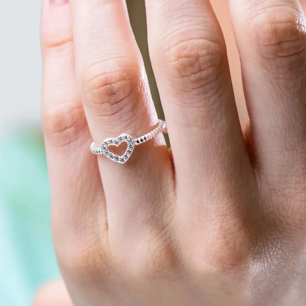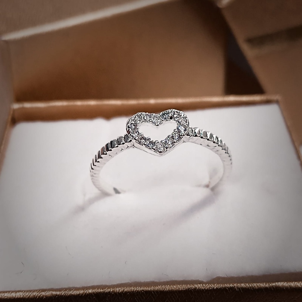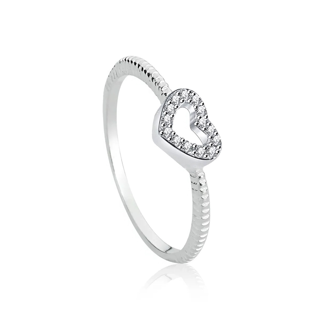 Anel Prata 925 Coração Vazado Cravejado Zircônias Luxo
