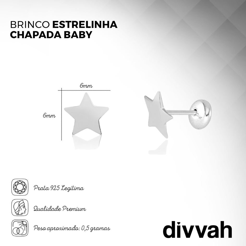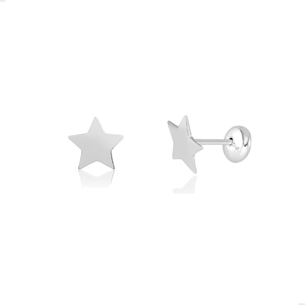 Brinco Prata 925 Infantil Mini Estrelinha Chapada Tarraxa Baby Não Machuca