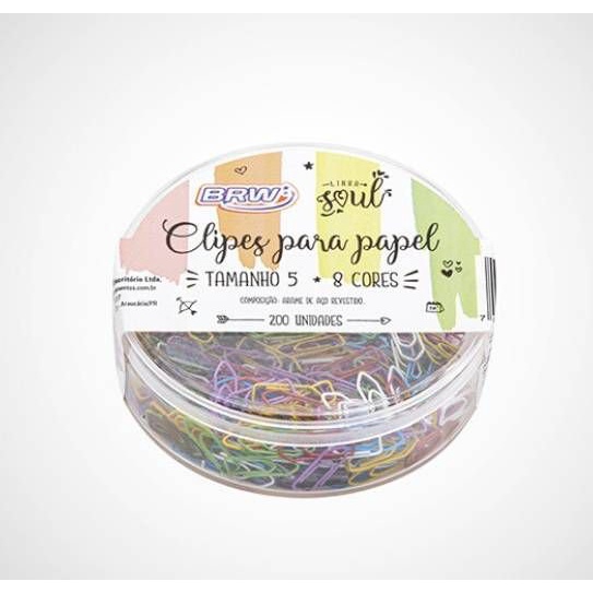 Clips para papel BRW tamanho 5 colorido 200un