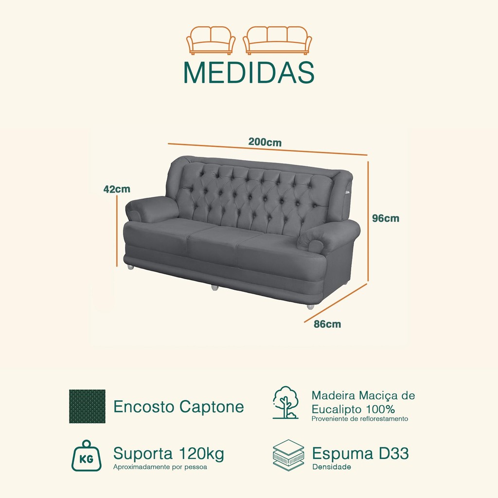 Sofá Finlândia 3 Lugares Pluma Cinza