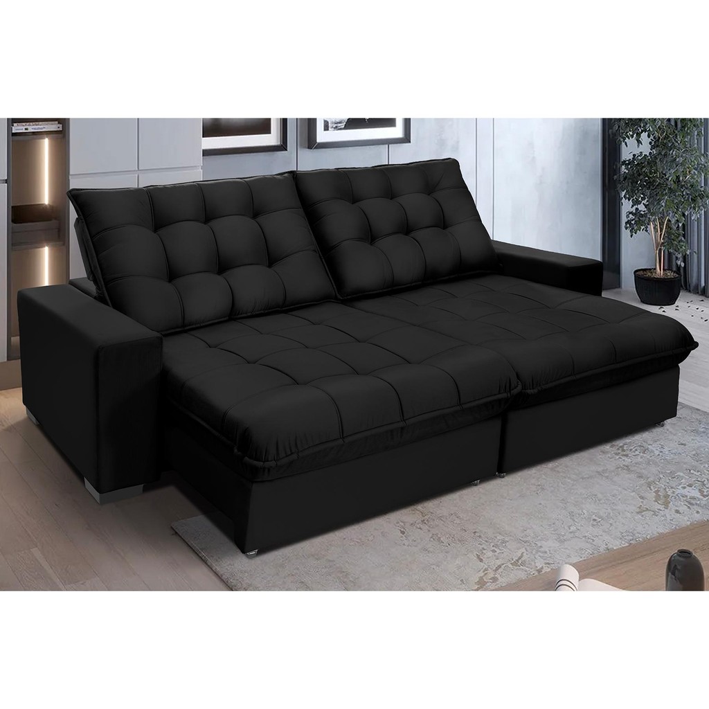 Sofá Retrátil E Reclinável 2,10m Suede Califórnia Preto