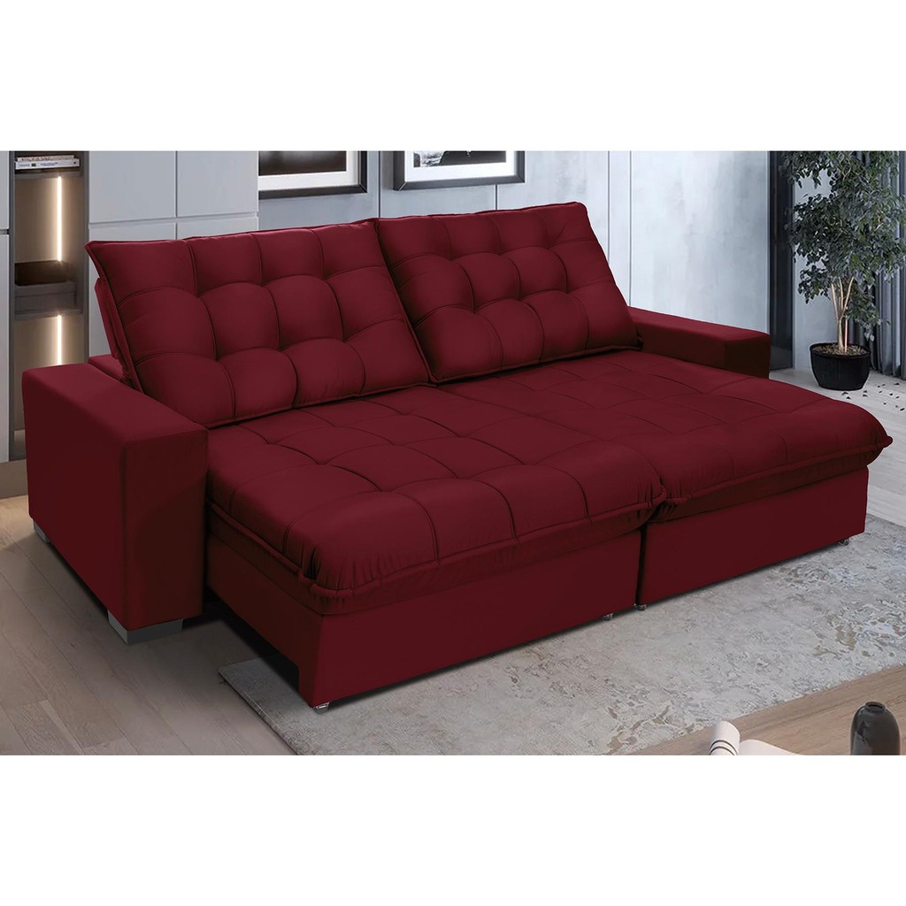 Sofá Retrátil E Reclinável 3,10m Suede Califórnia Vinho