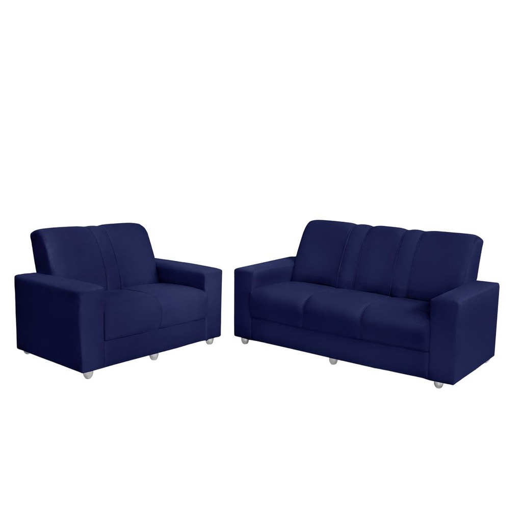 Conjunto Sofá 1,74 x 1,24m 3 e 2 Lugares Suede Roma Azul