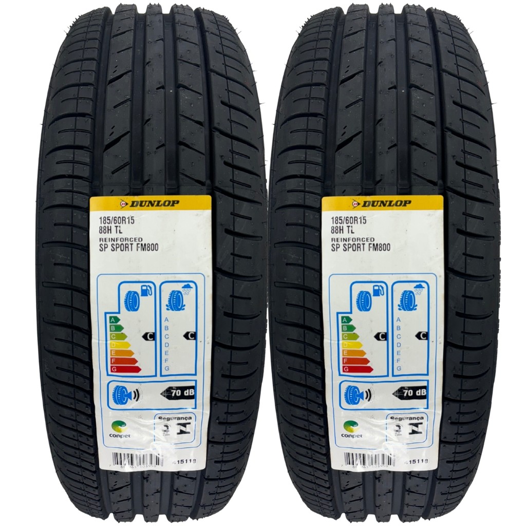 Kit 2 Pneus Dunlop 185/60R15 88H SP Sport FM800 Prisma Polo Onix HB20 Argo