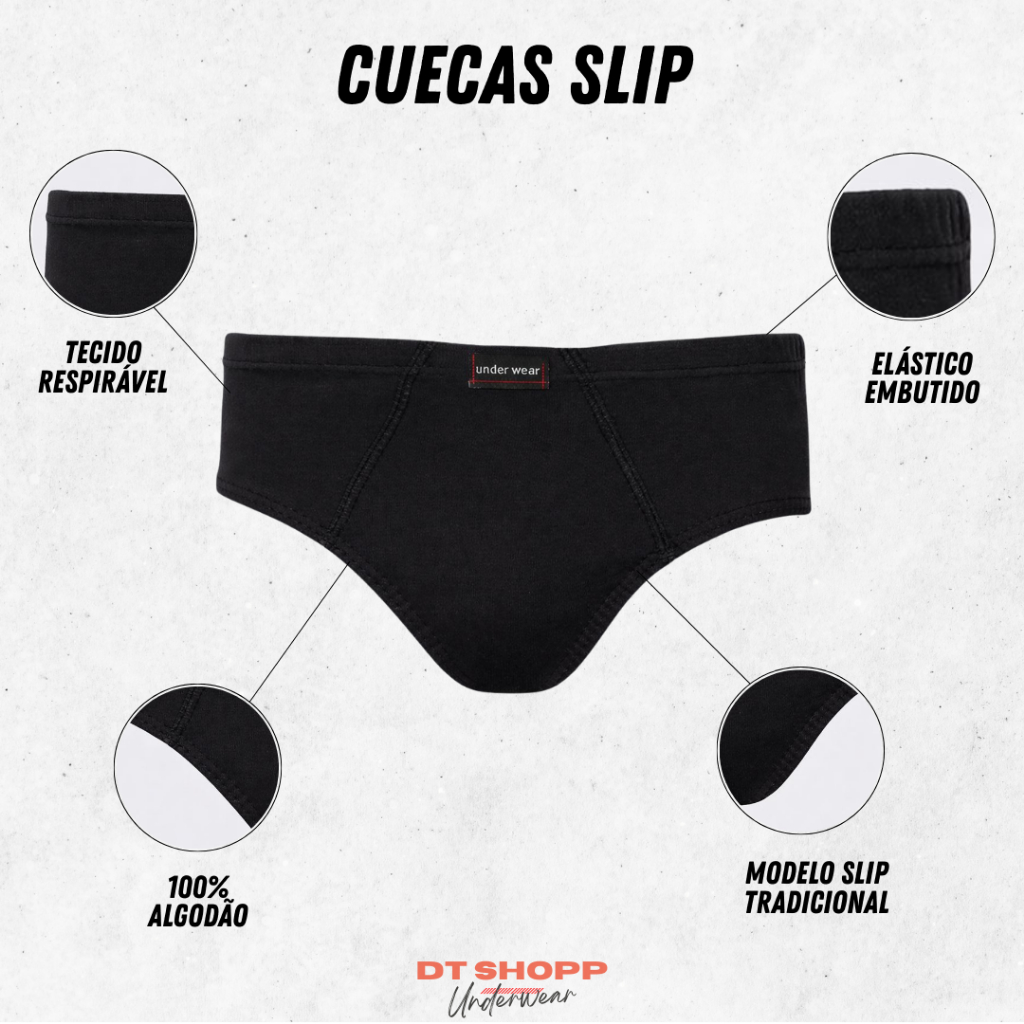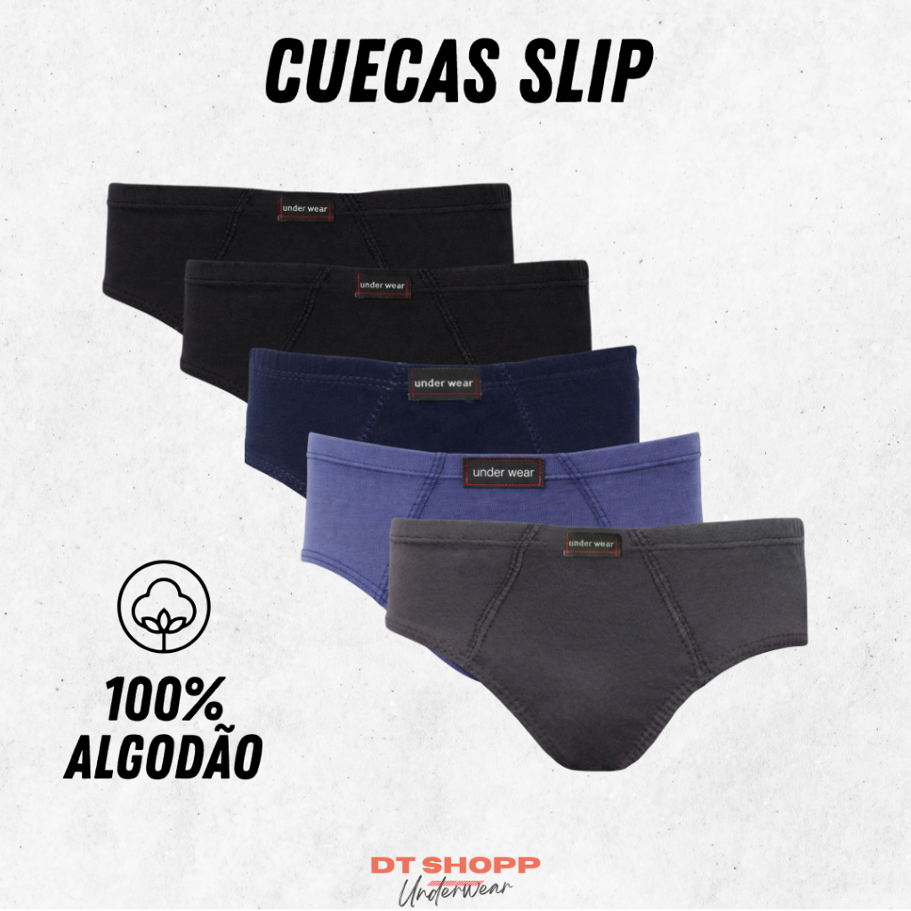 kit 10 Cuecas Básica Slip Tradicional Adulto 100% Algodão