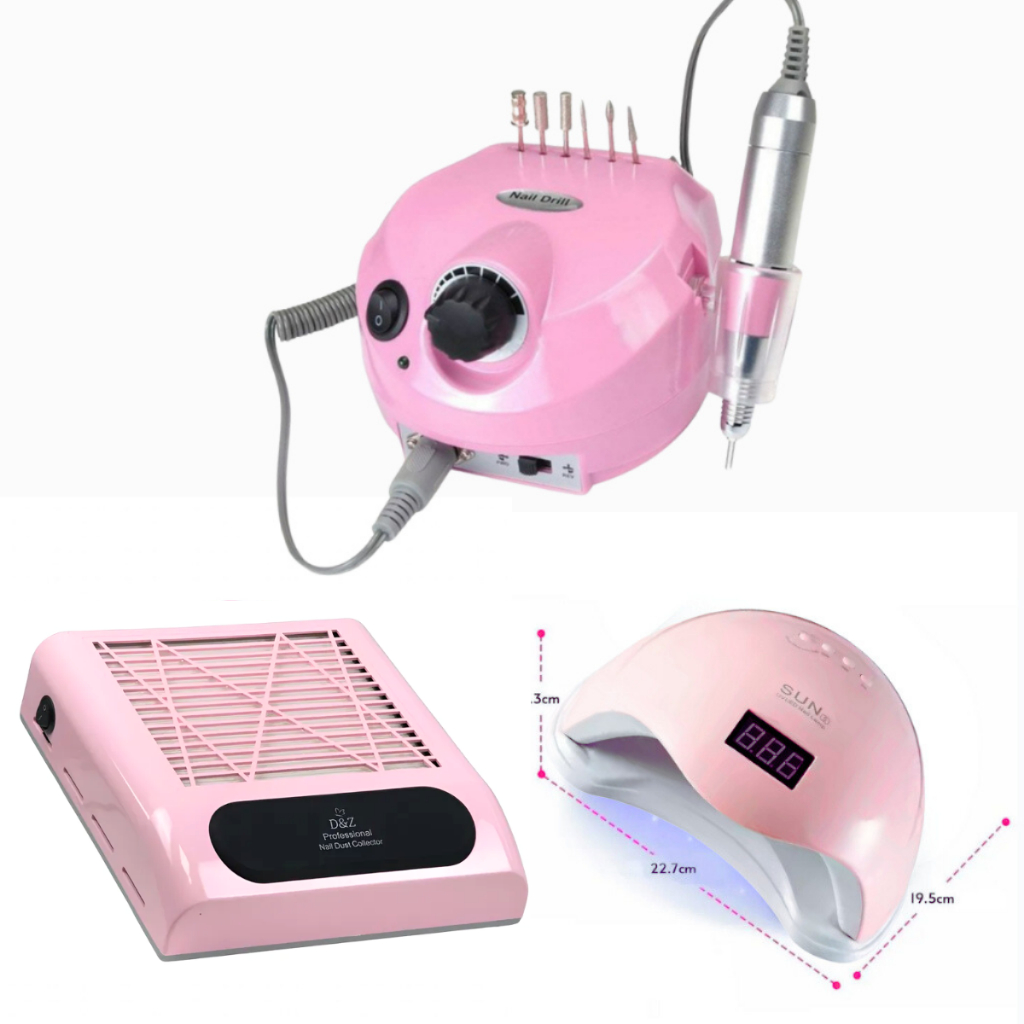 Kit Lixadeira Porquinho 50000 RPM Nail Drill + Cabine Sun 5 + Coletor de Pó de unha D&Z 80W