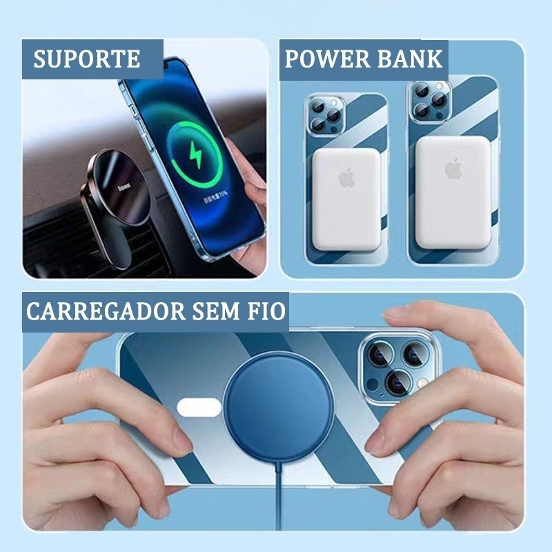 Capa Magsafe Transparente Para iphone 14 13 12 11 X 7 8 Pro MAX