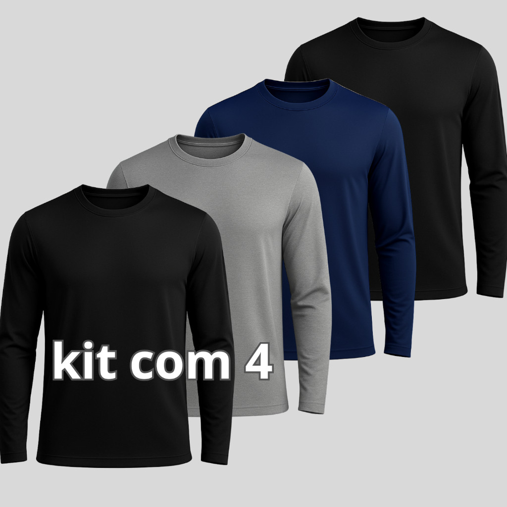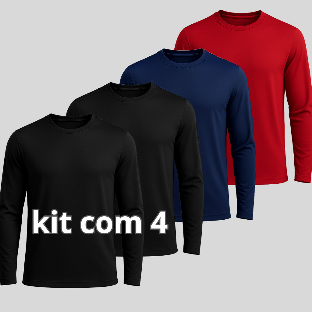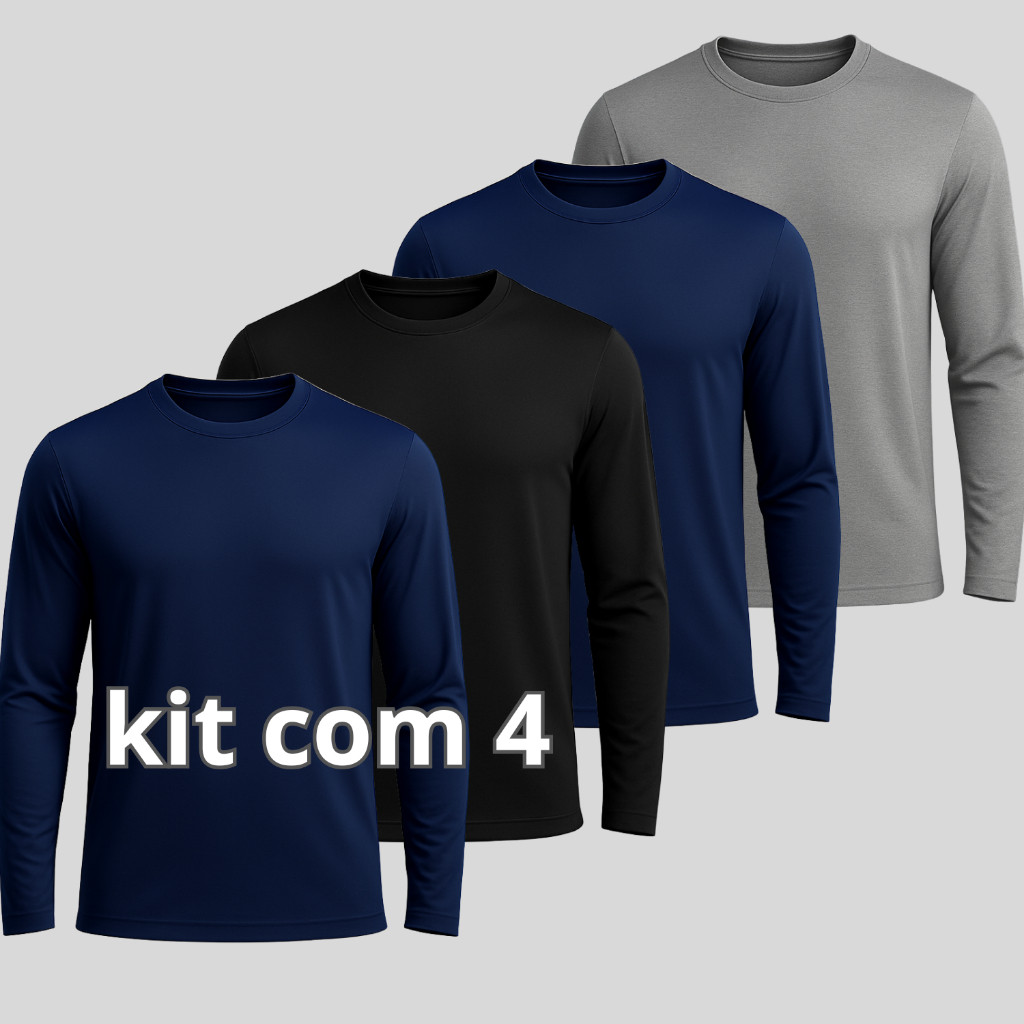 Kit 4 Camisetas Uv 50 Masculina Proteção Solar Leve Manga Longa Treino Praia Pesca Corrida Ciclismo Academia Dry Fit