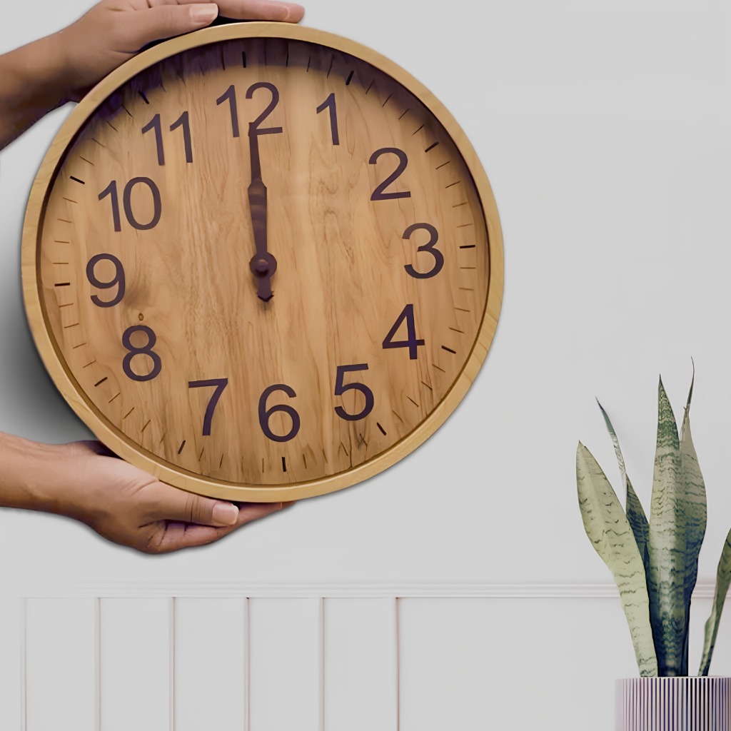 Relógio de Parede Decorativo 24cm Marrom Claro Estilo Madeira Natural Silencioso Moderno e Leve