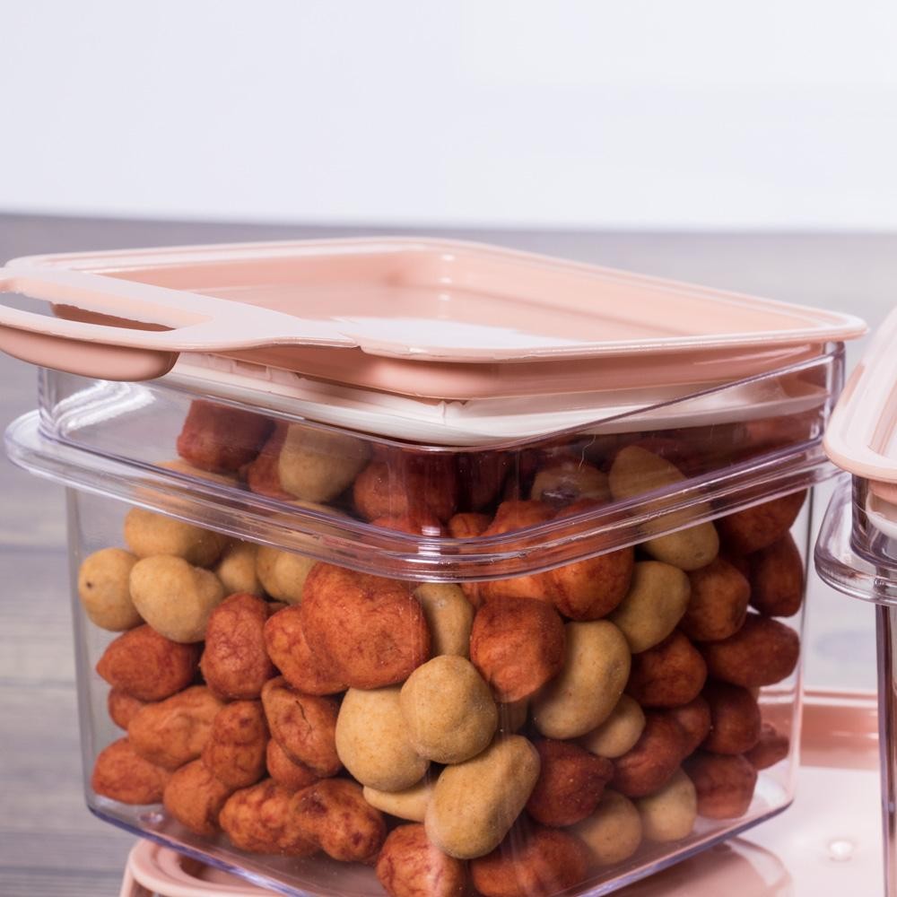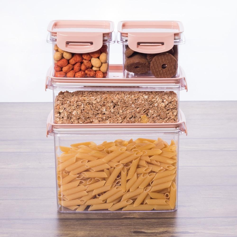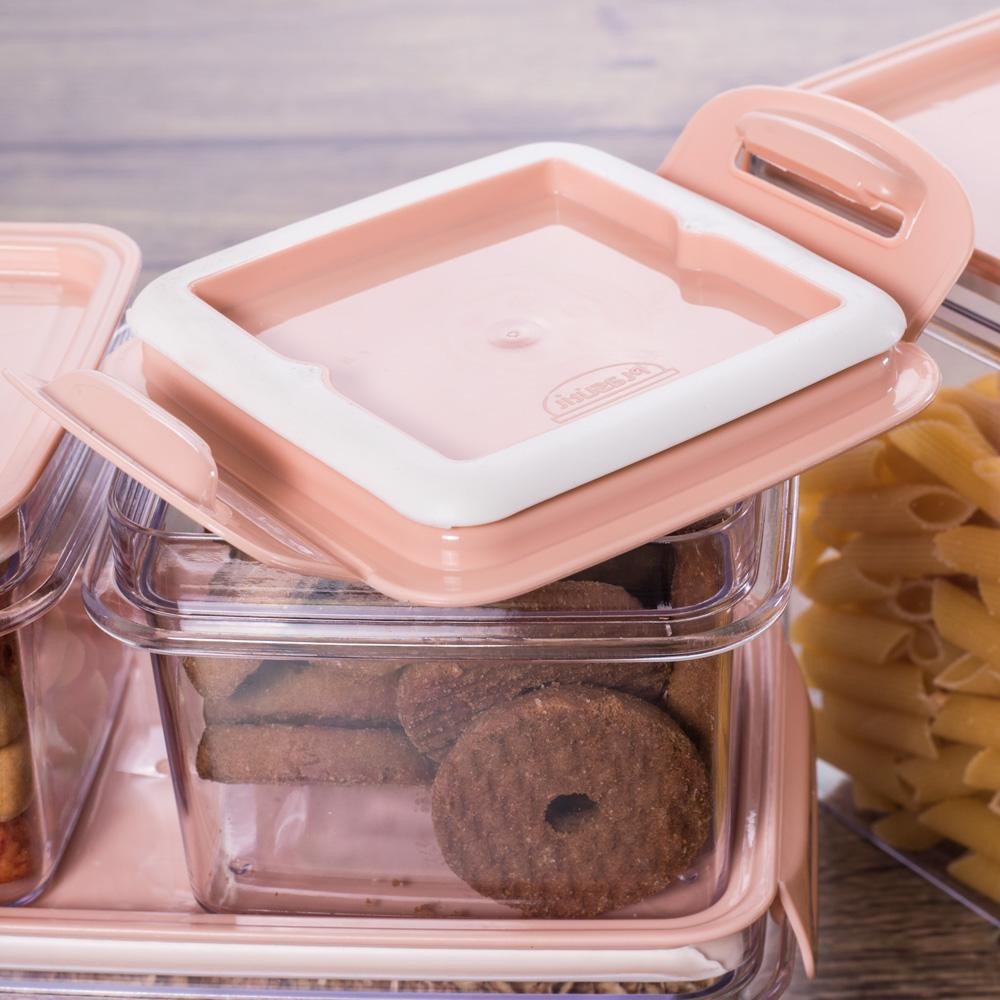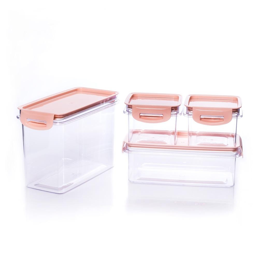 Kit Potes de Plástico Herméticos Travas Cristal 4 Peças Rosa