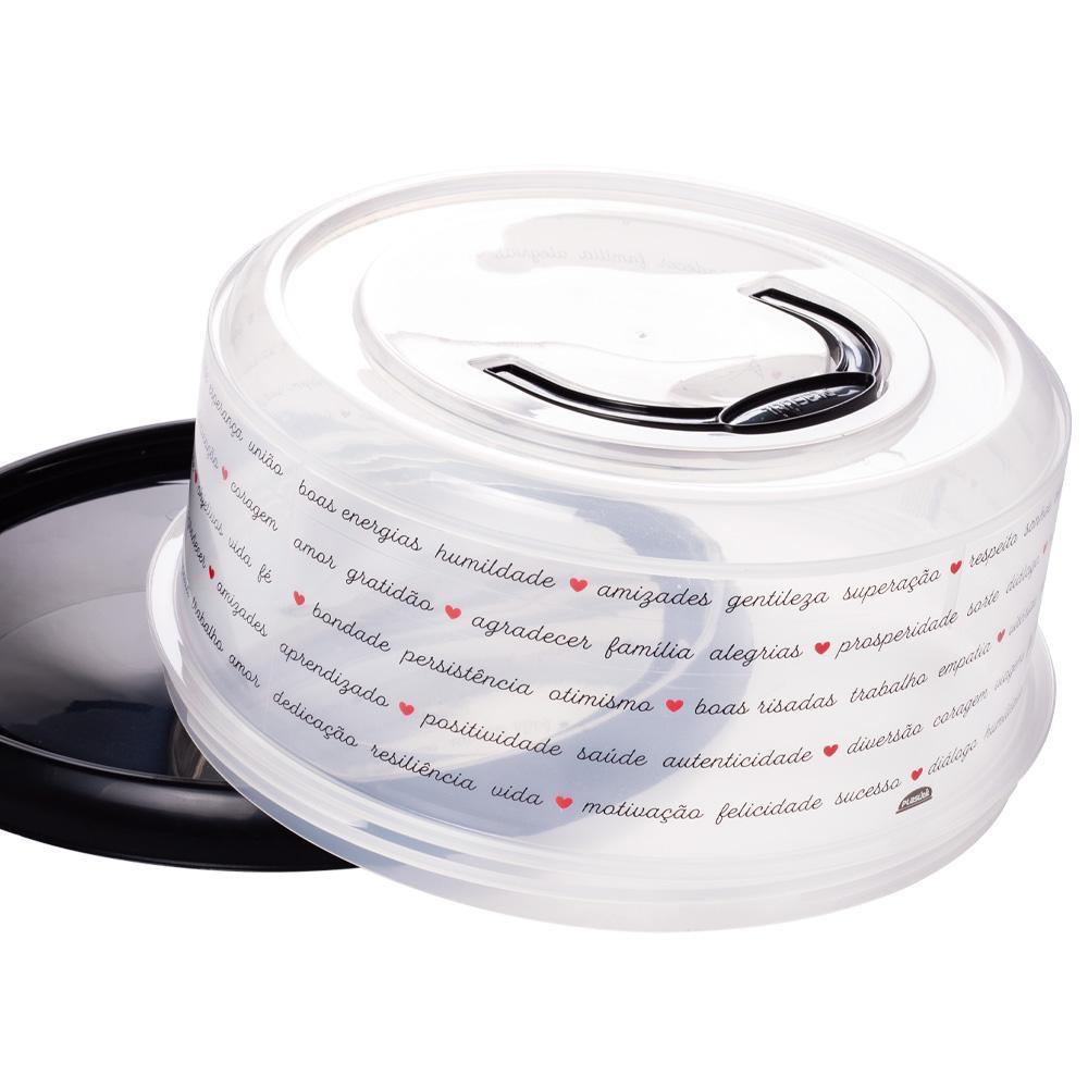 Boleira Fechamento Rosca com Alça Plástico Preta Palavras Plasútil