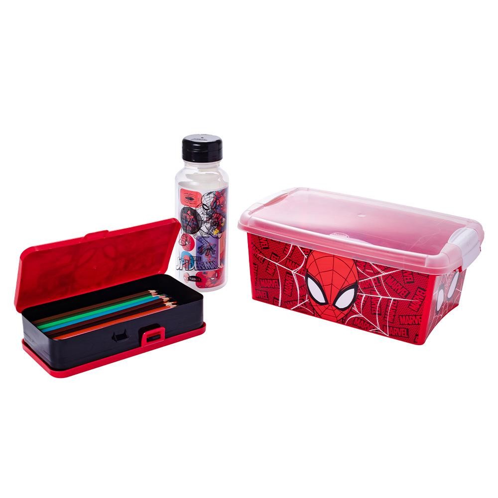 Kit Homem Aranha Caixa Garrafa Adesivo Organizador Duplo Volta às Aulas Material Escolar Presente Plasútil