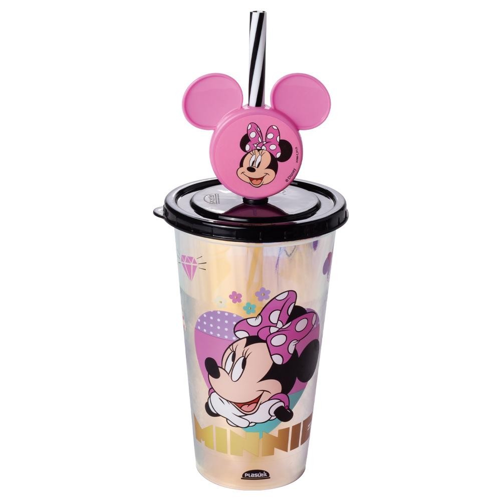 Copo Minnie Metalizado Muda de Cor Canudo Pin Plasútil