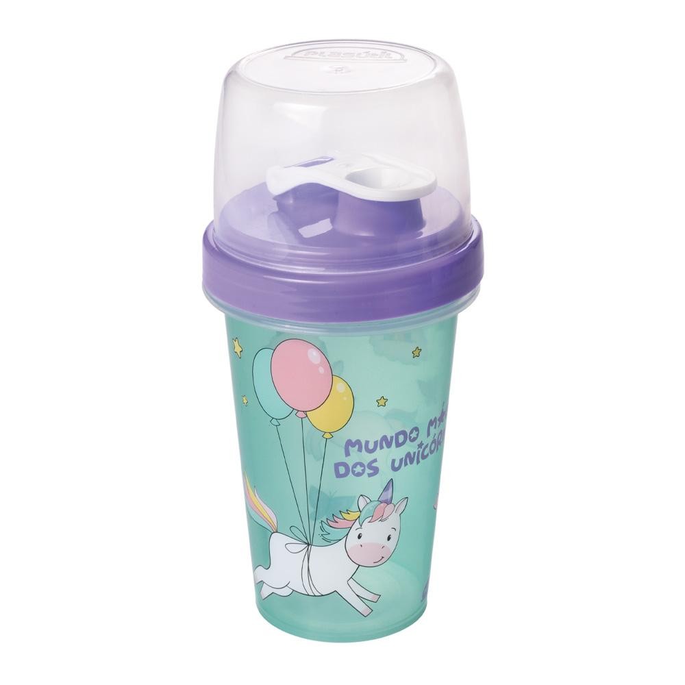 Mini Shakeira Unicórnio Garrafa Lancheira Infantil Plasútil