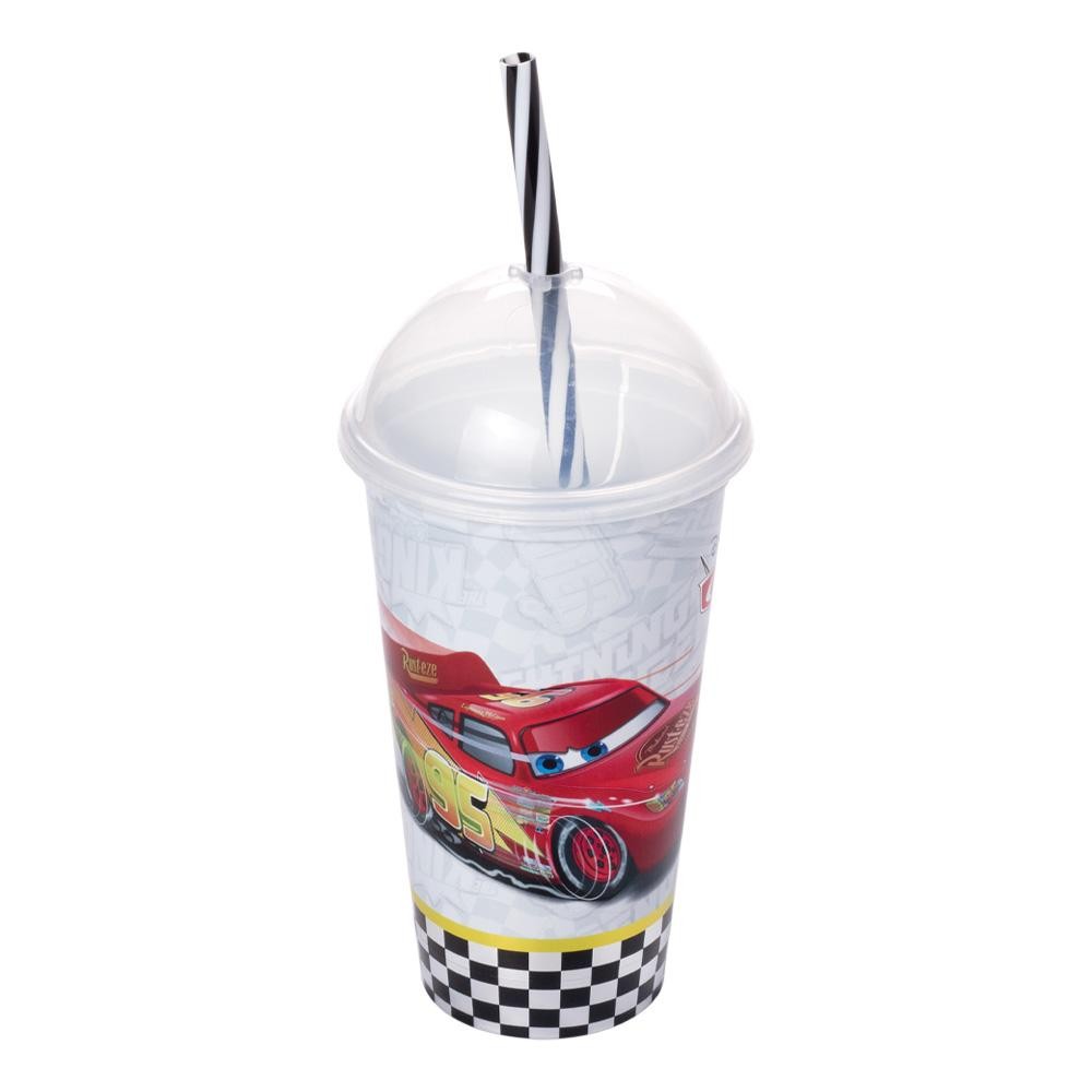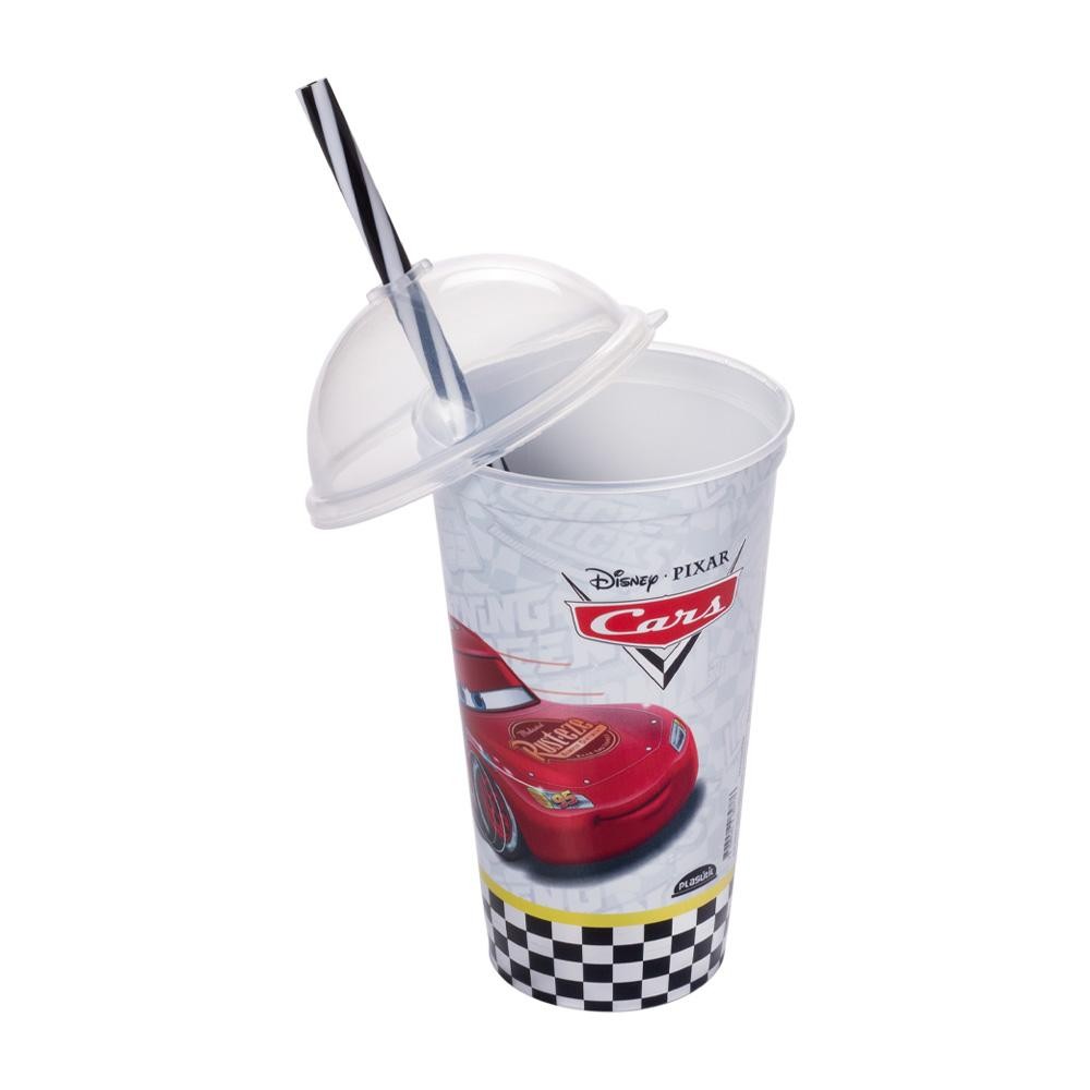 Copo Carros Mc Queen Canudo Shake Plástico 500 ml Plasútil