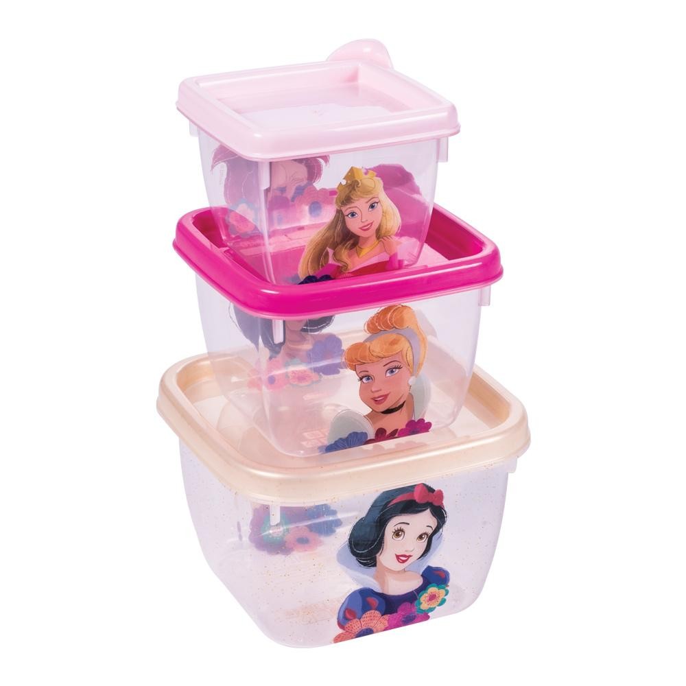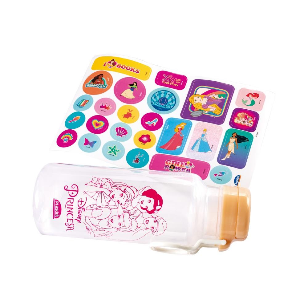 Kit 5 Peças Princesas 3 Potes 1 Garrafa Adesivo 1 Caneca Disney Plasútil