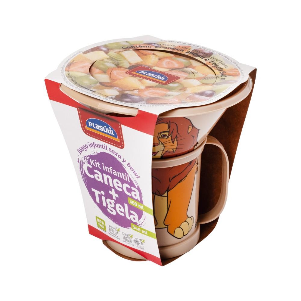 Kit Rei Leão Caneca e Tigela Bowl 2 Peças Plasútil