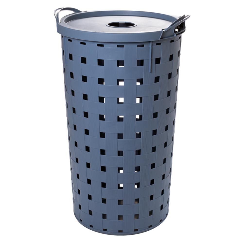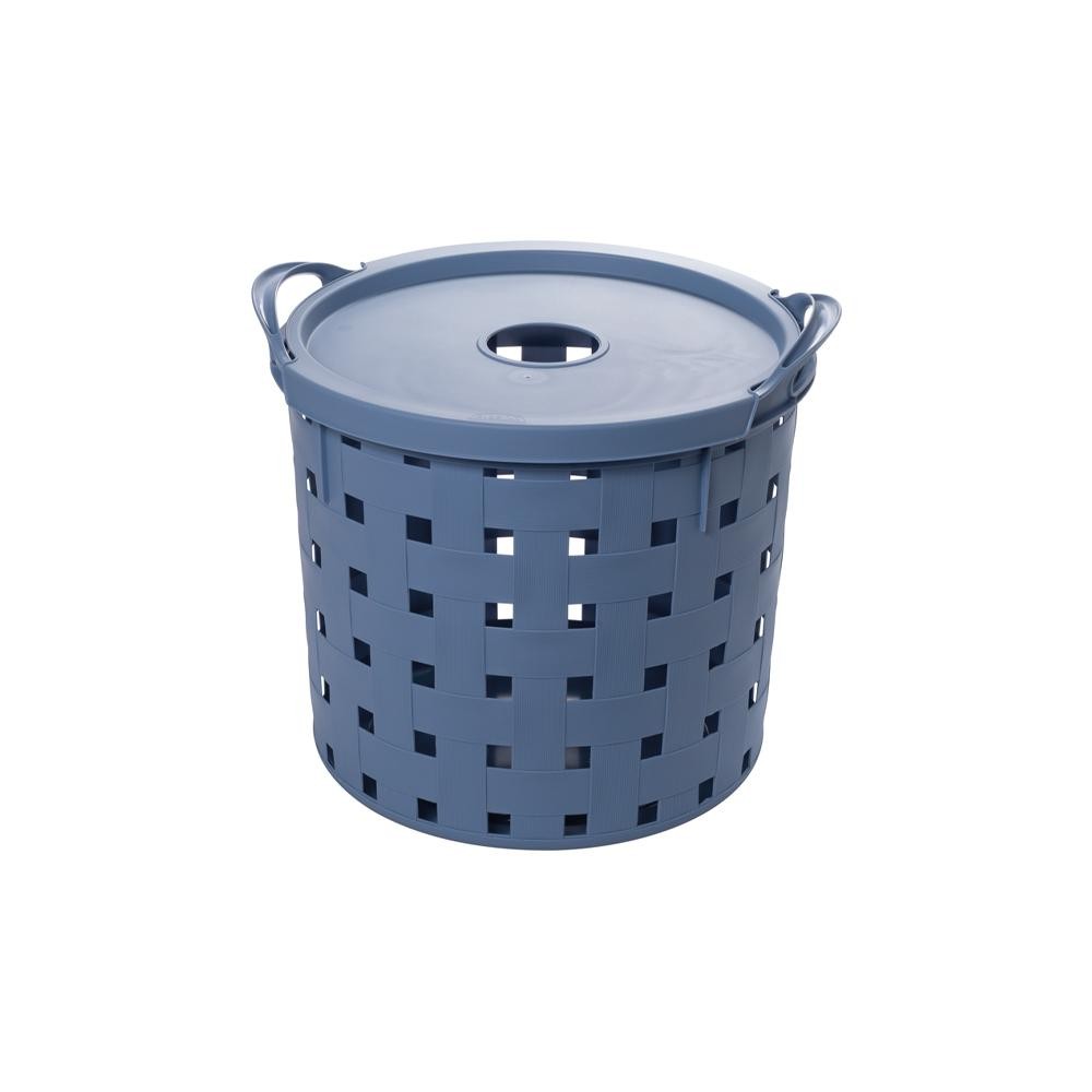 Kit 2 Cestos Organizadores Multiuso Redondos Alças Tampa Azul Lavanderia Banheiro Plasútil