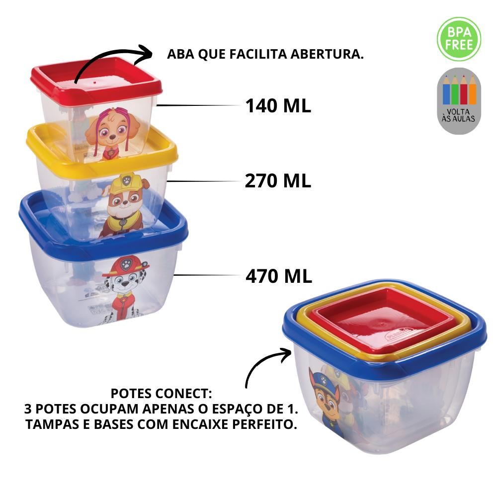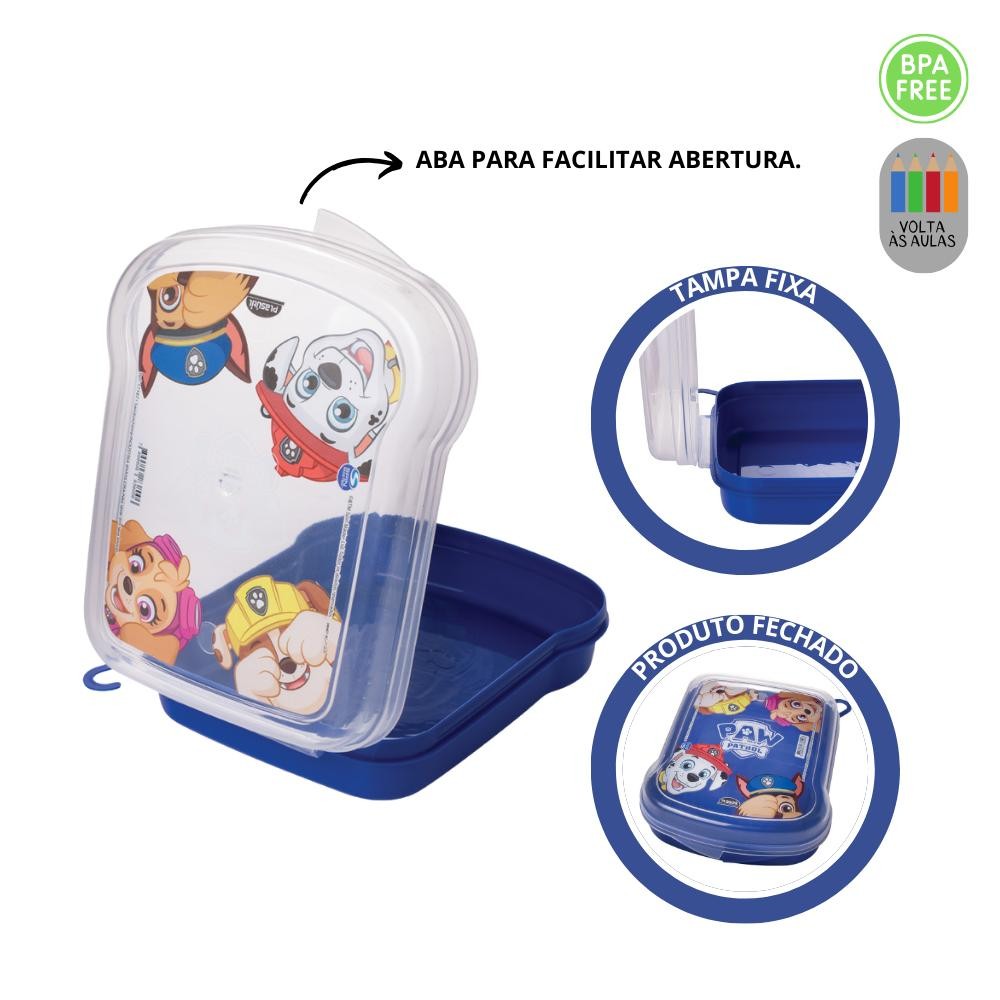 Kit Lancheira Patrulha Canina 5 Peças 3 Potes 1 Garrafa Mini Shakeira 1 Sanduicheira Plasútil