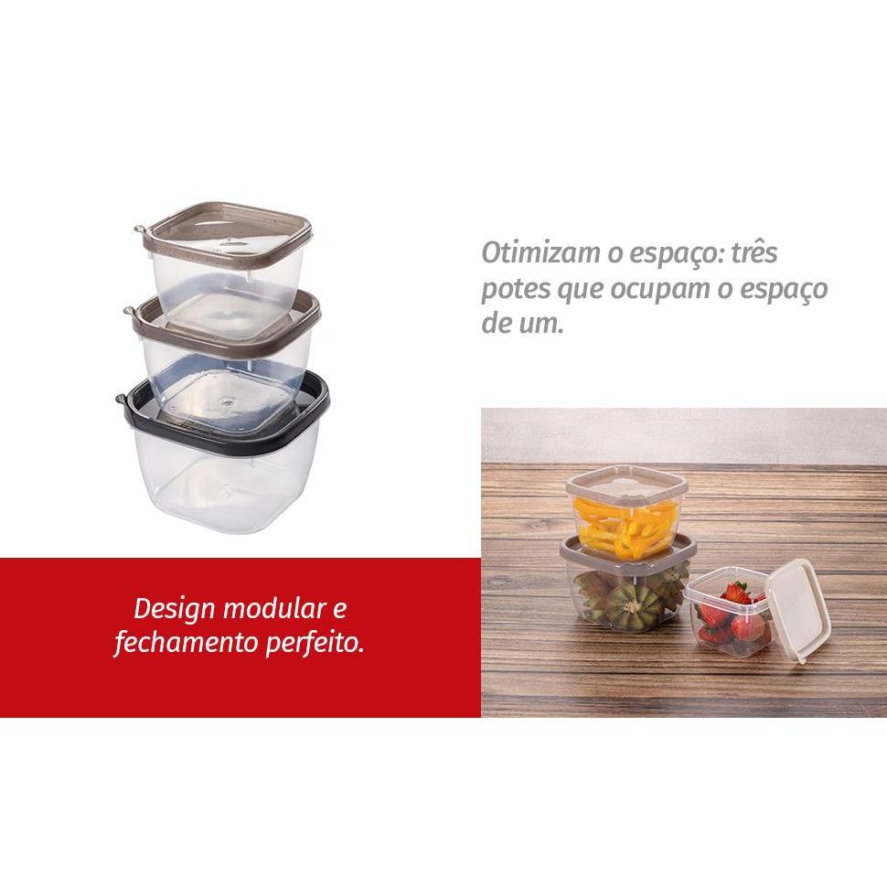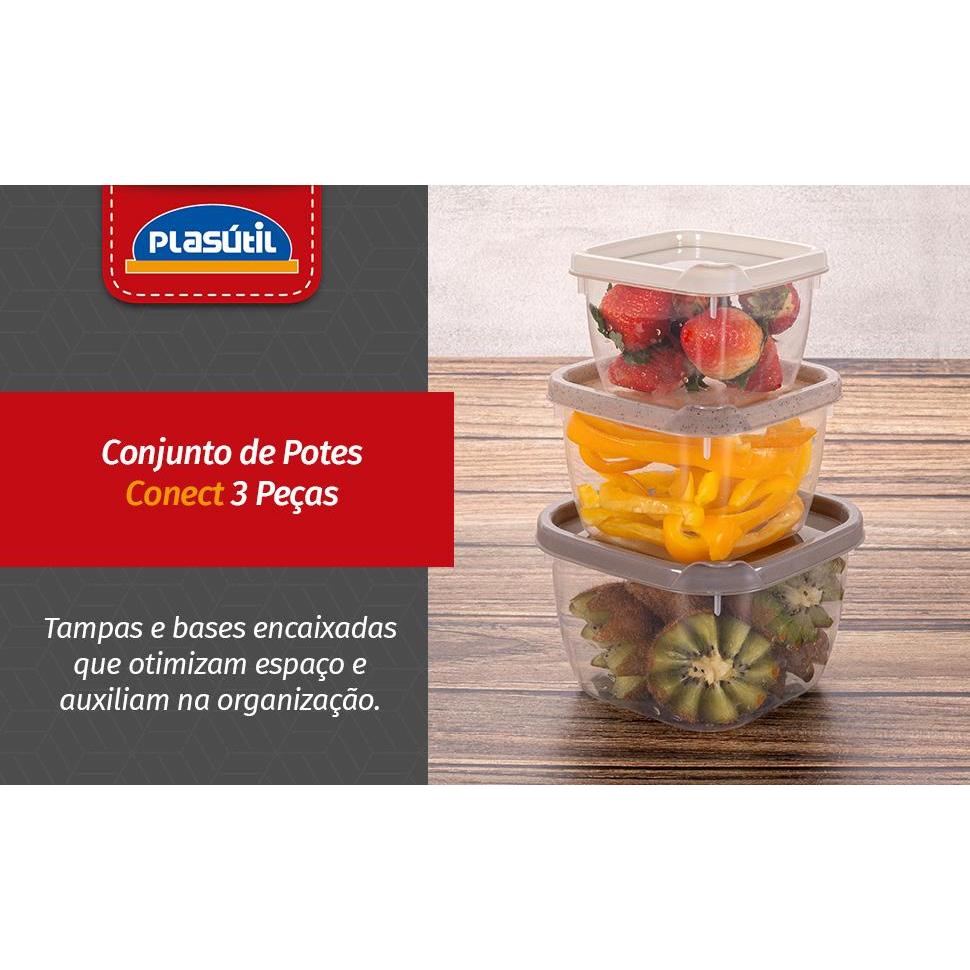 Kit 3 Potes Encaixáveis Quadrados Plástico Conect Plasútil