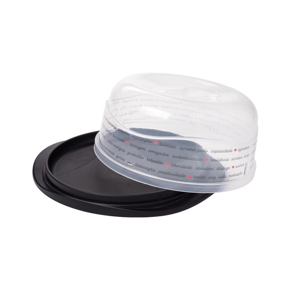 Boleira Redonda Tampa com Pegador Plástico Preta Palavras Plasútil