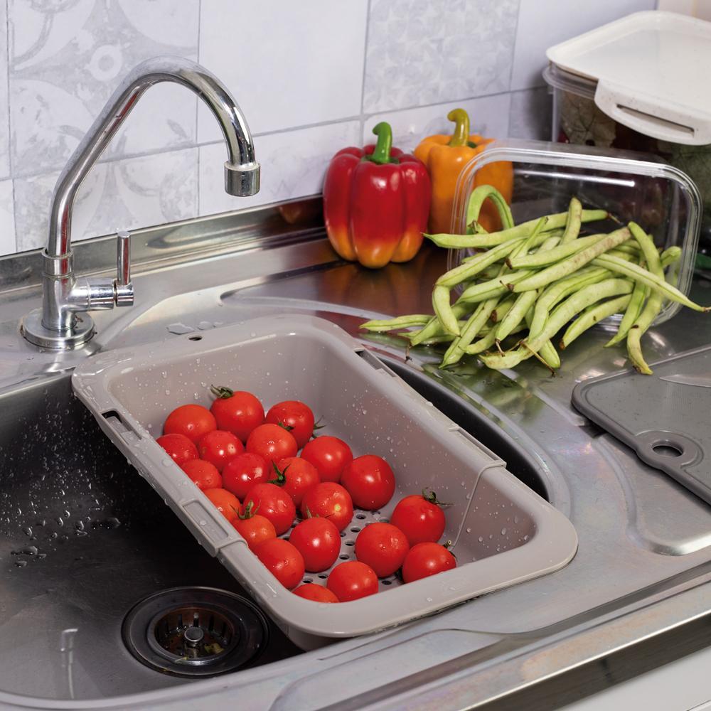 Escorredor de Pia Ajustável Retrátil Multiuso Cinza Plasútil